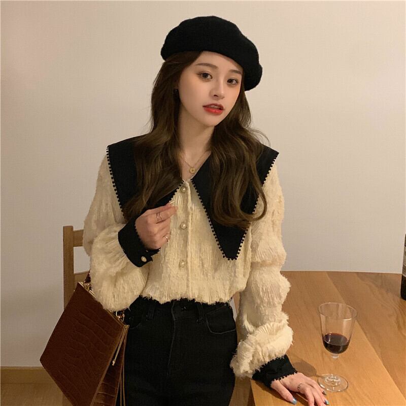 【韓国通販 dgo】retro doll neck tops beige color(A0533)