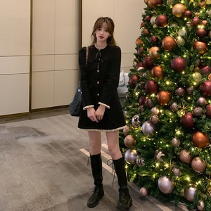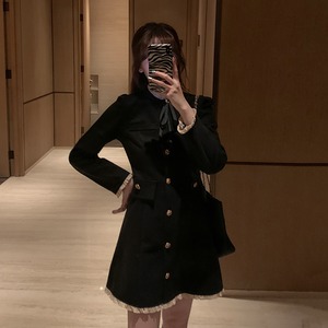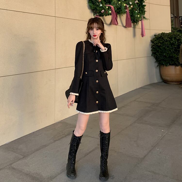 【韓国通販 dgo】retro high-waist elegant one-piece dress black color(A0528)