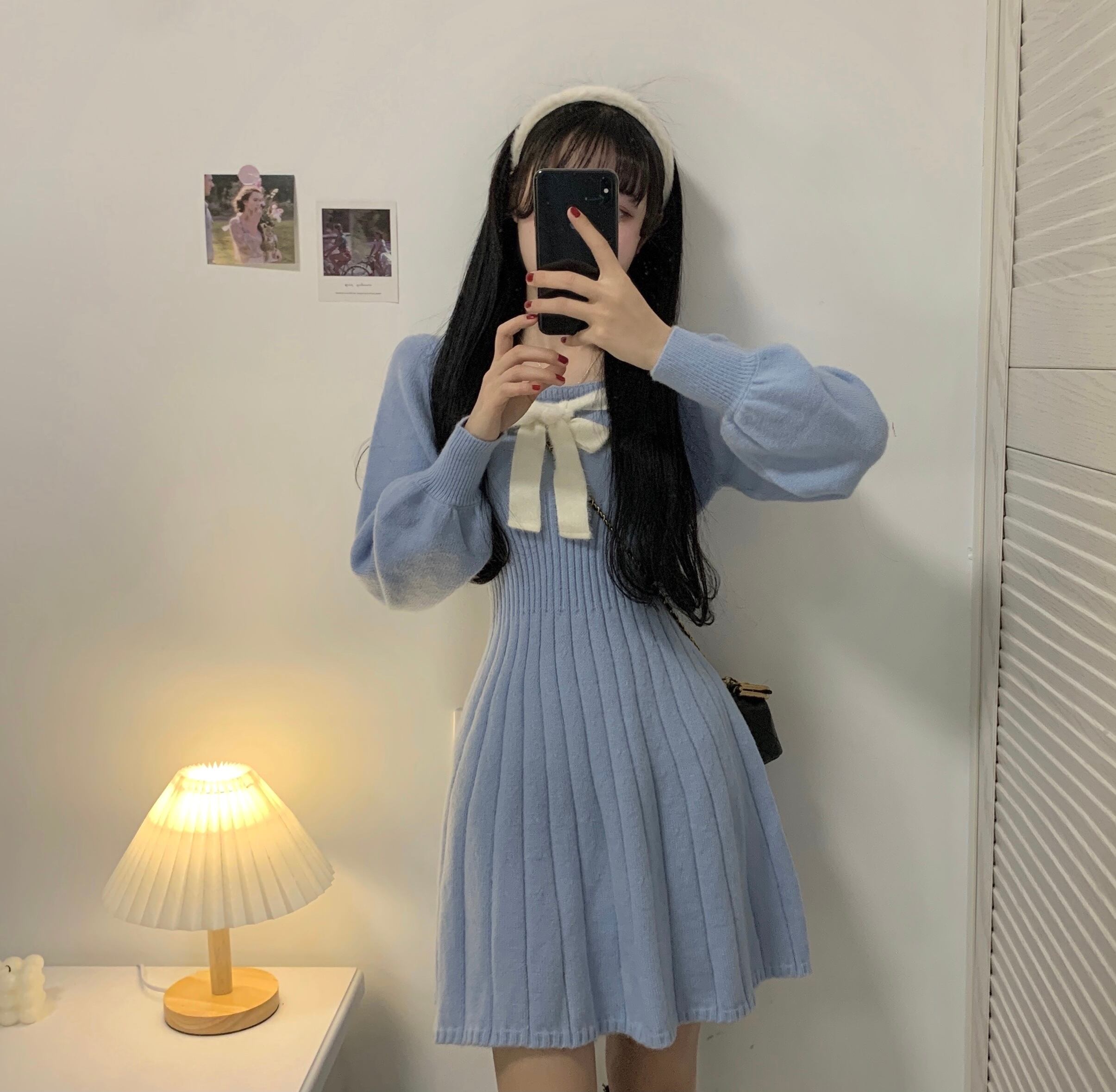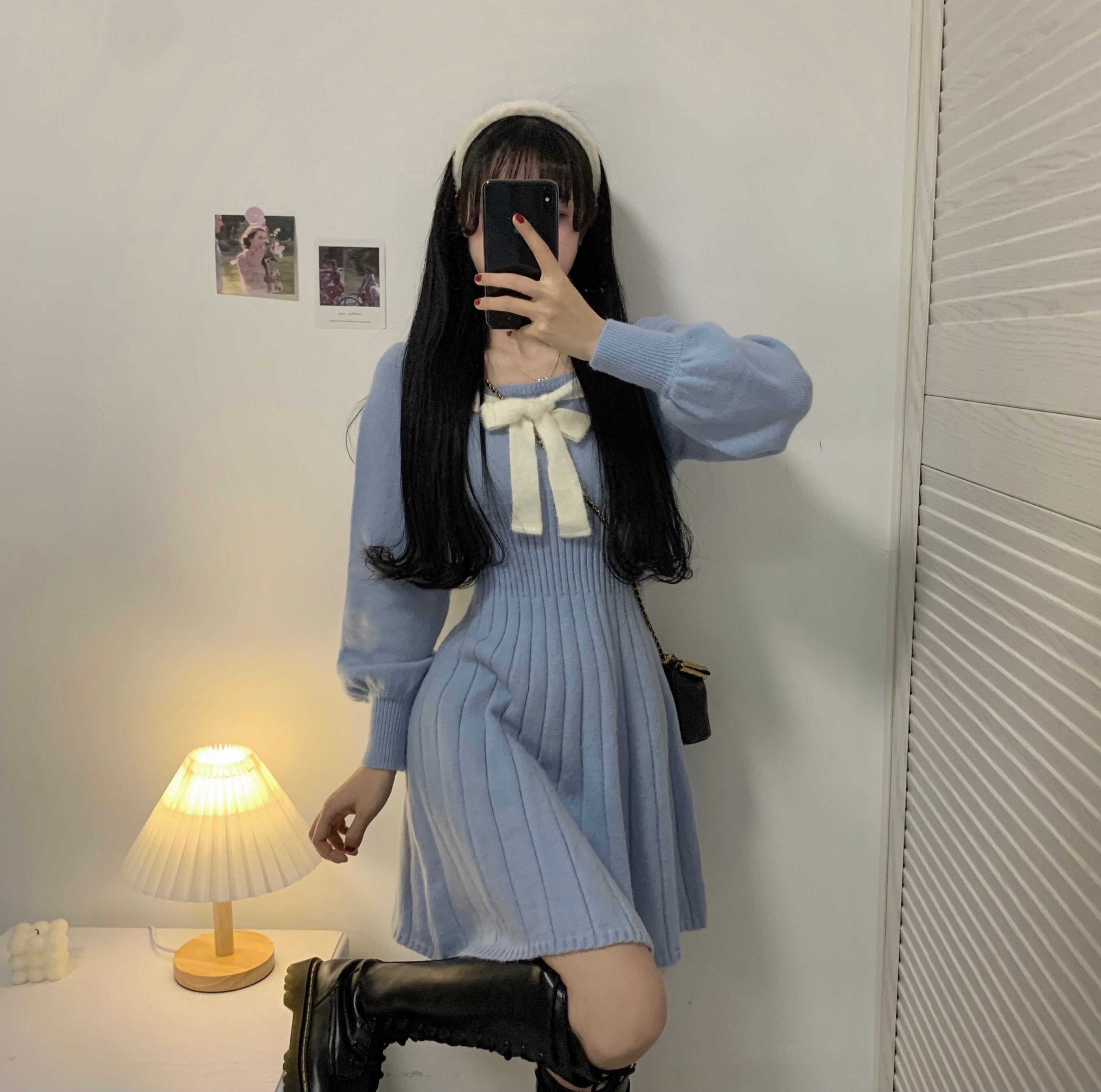 【韓国通販 dgo】round neck knit one-piece blue color(A0516)