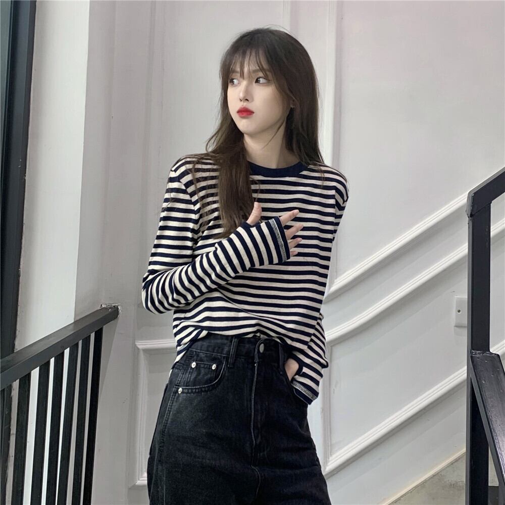 【韓国通販 dgo】low round neck stripe tops 2colors(A0508)