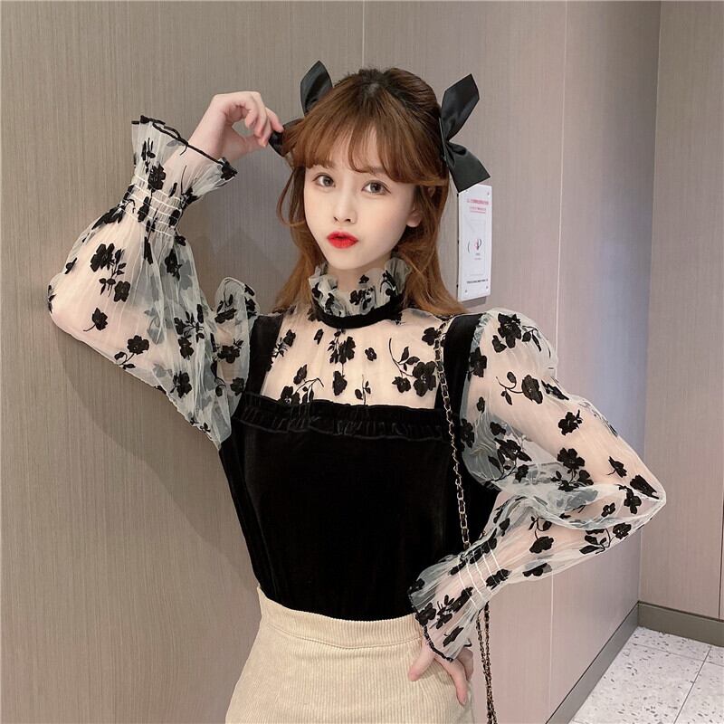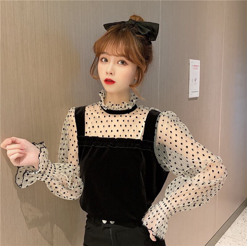 【韓国通販 dgo】mesh stitch long sleeve tops 2types(A0495)