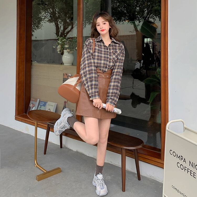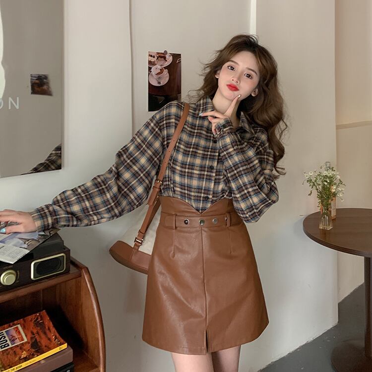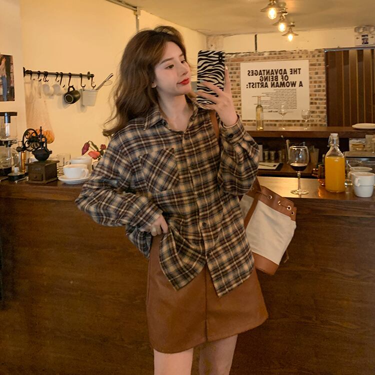 【韓国通販 dgo】checked long sleeve shirt coffee color(A0496)