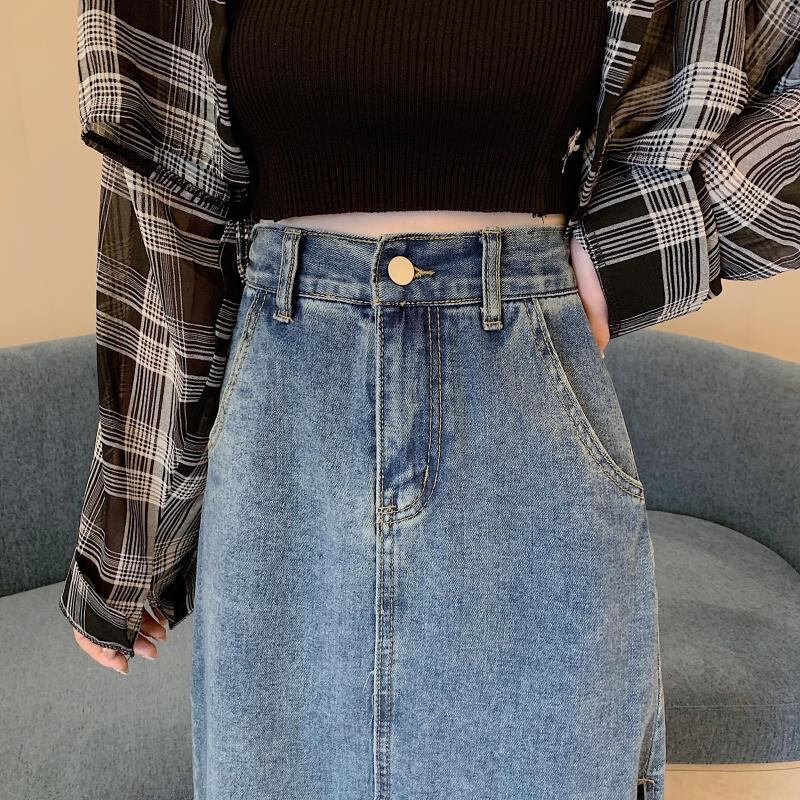 【韓国通販 dgo】middle-length split denim skirt(A0489)