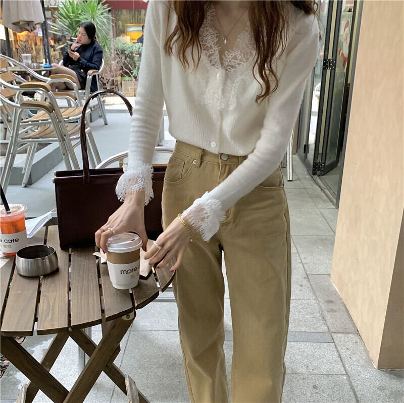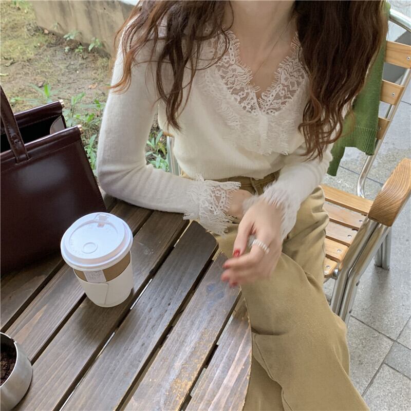 【韓国通販 dgo】v-neck knit lace cardigan (A0473)