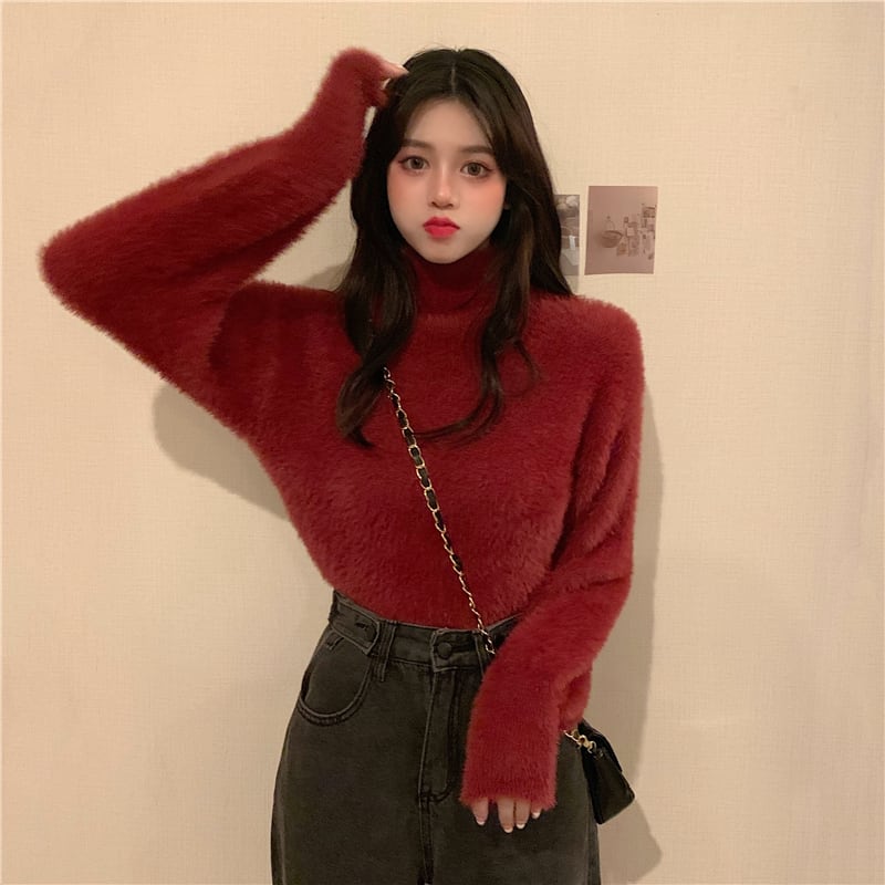 【韓国通販 dgo】half high neck long sleeve sweater 5colors(A0470)