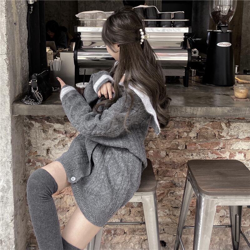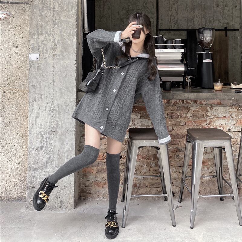 【韓国通販 dgo】middle-length knit cardigan gray color(A0463)