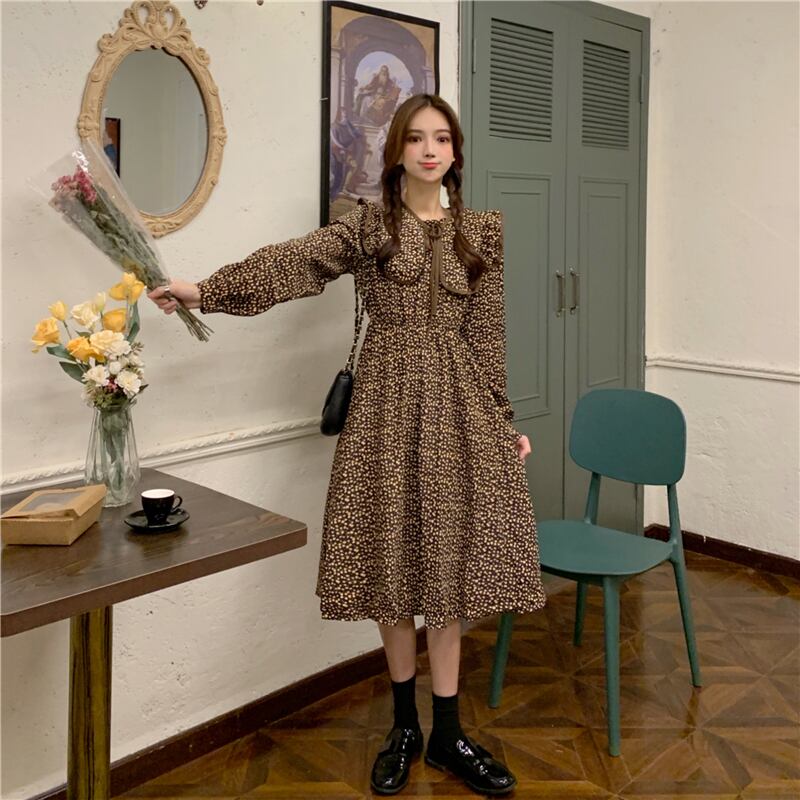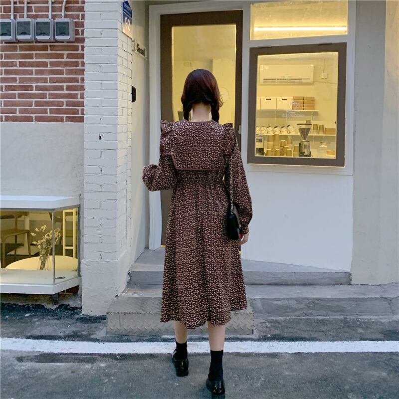 【韓国通販 dgo】retro doll neck floral one-piece dress 3colors(A0446)