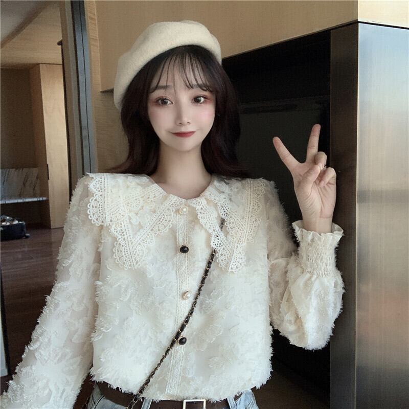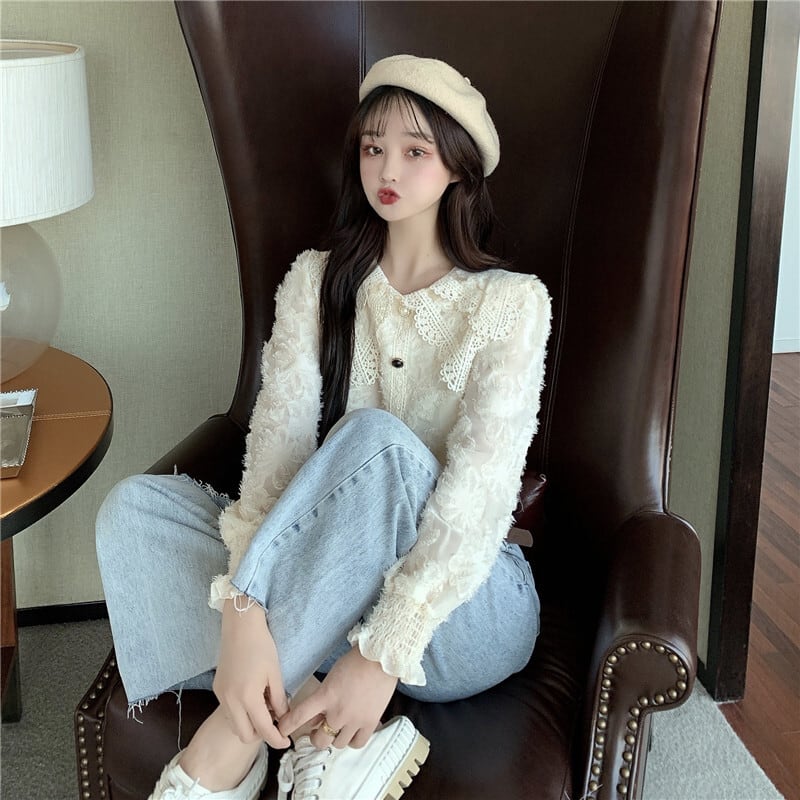 【韓国通販 dgo】long sleeve sweet blouse apricot color(A0436)