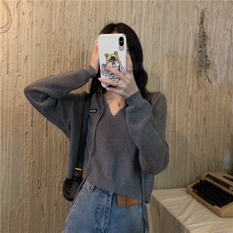 【韓国通販 dgo】v-neck long sleeve short blouse 4colors(A0423)