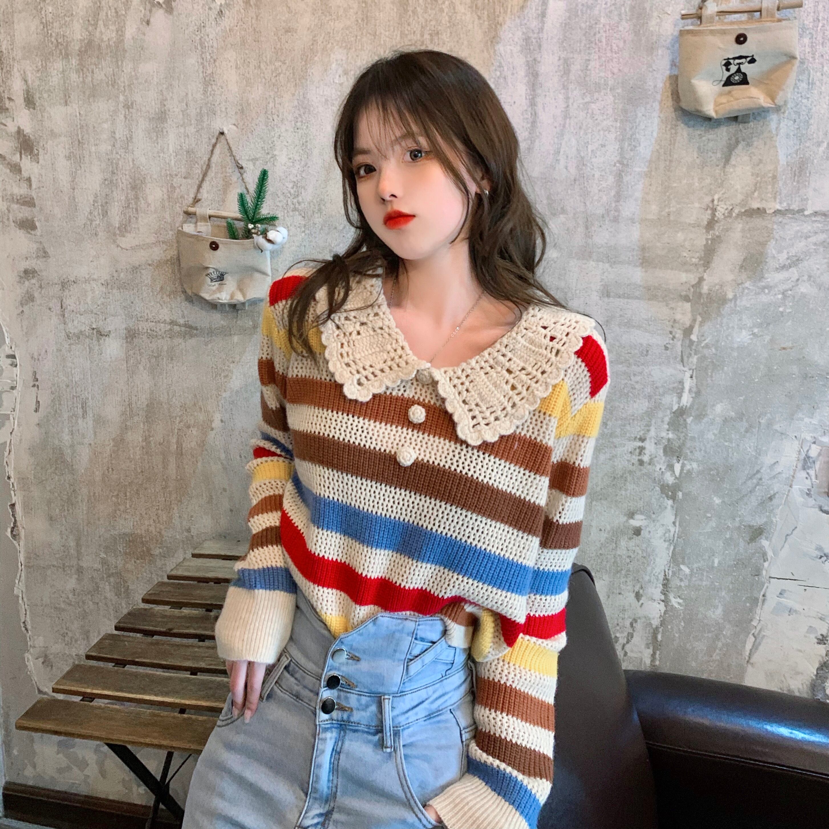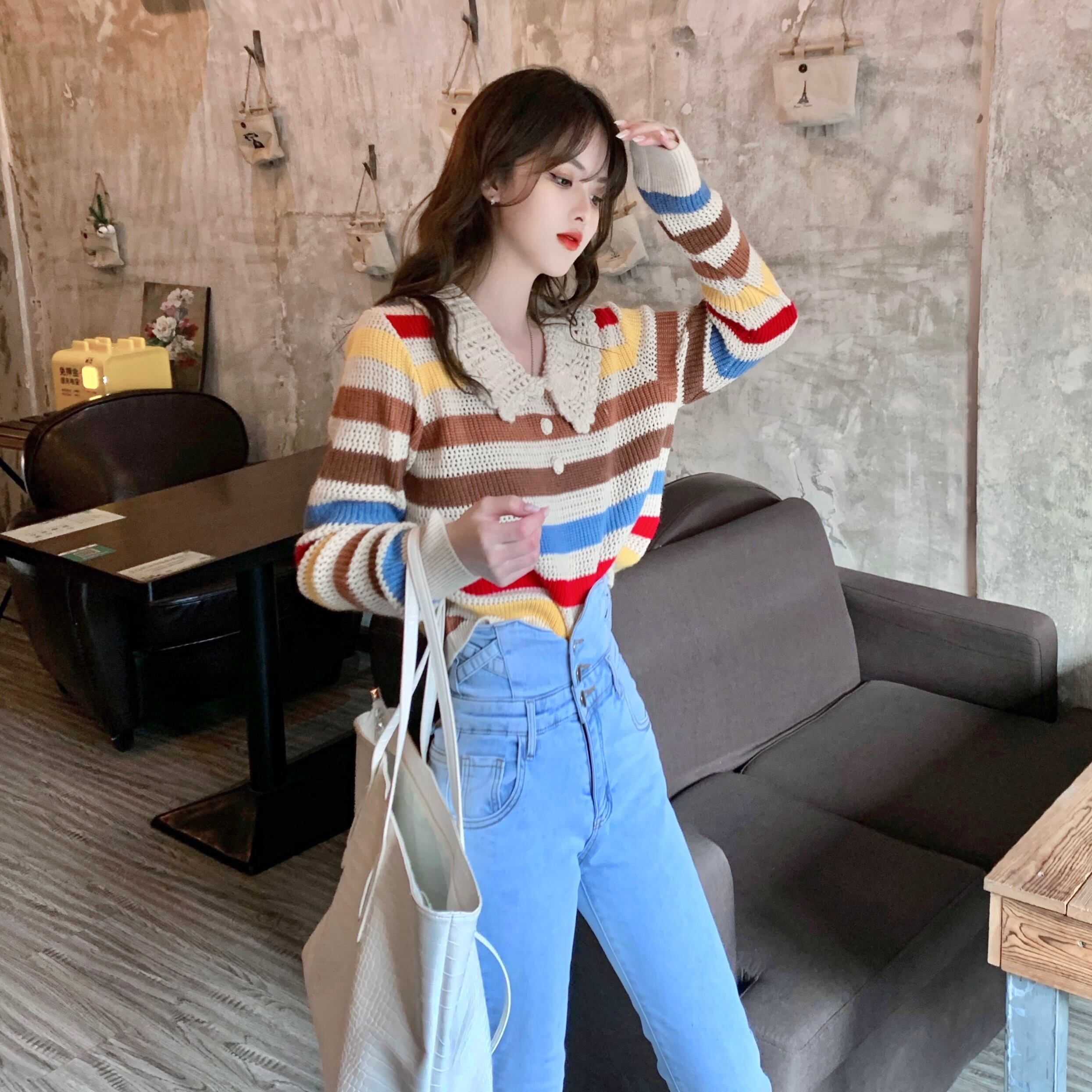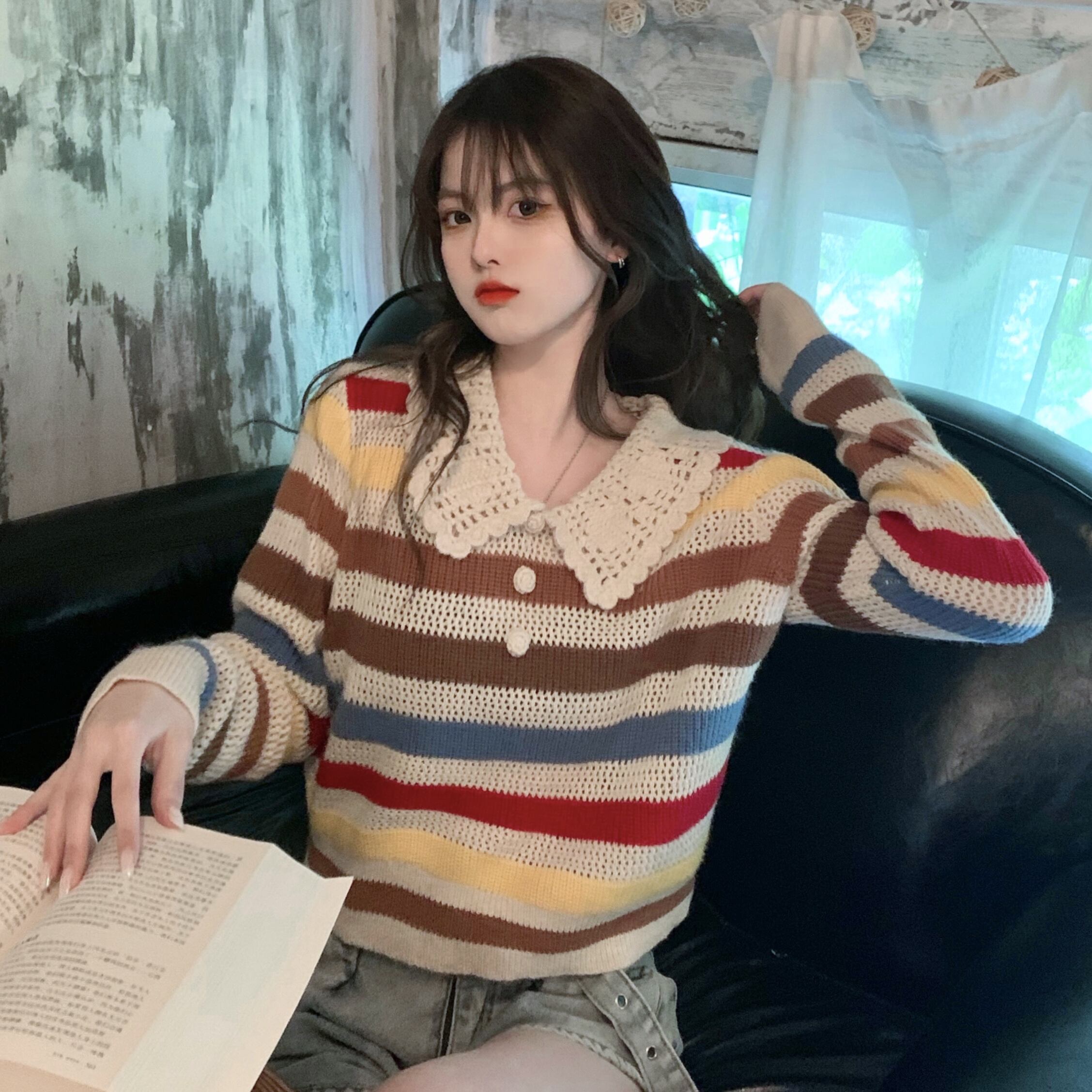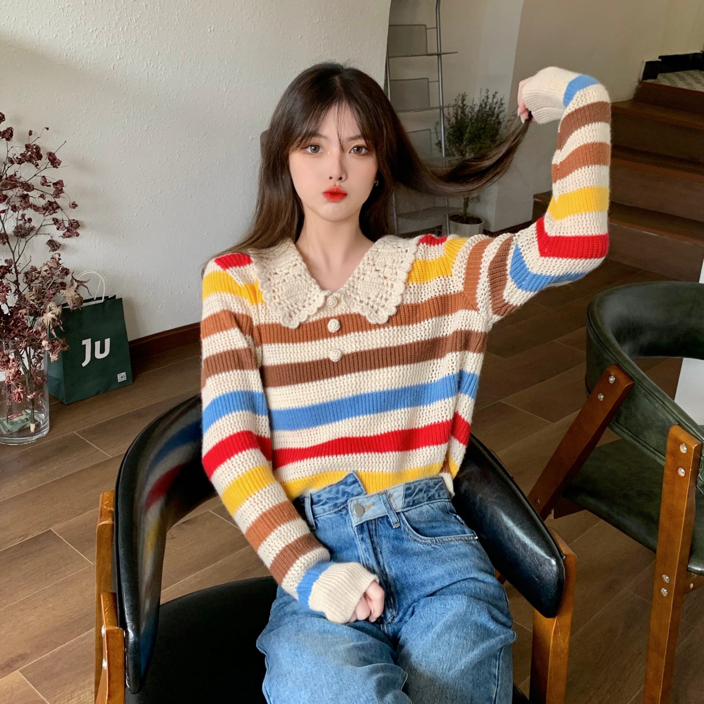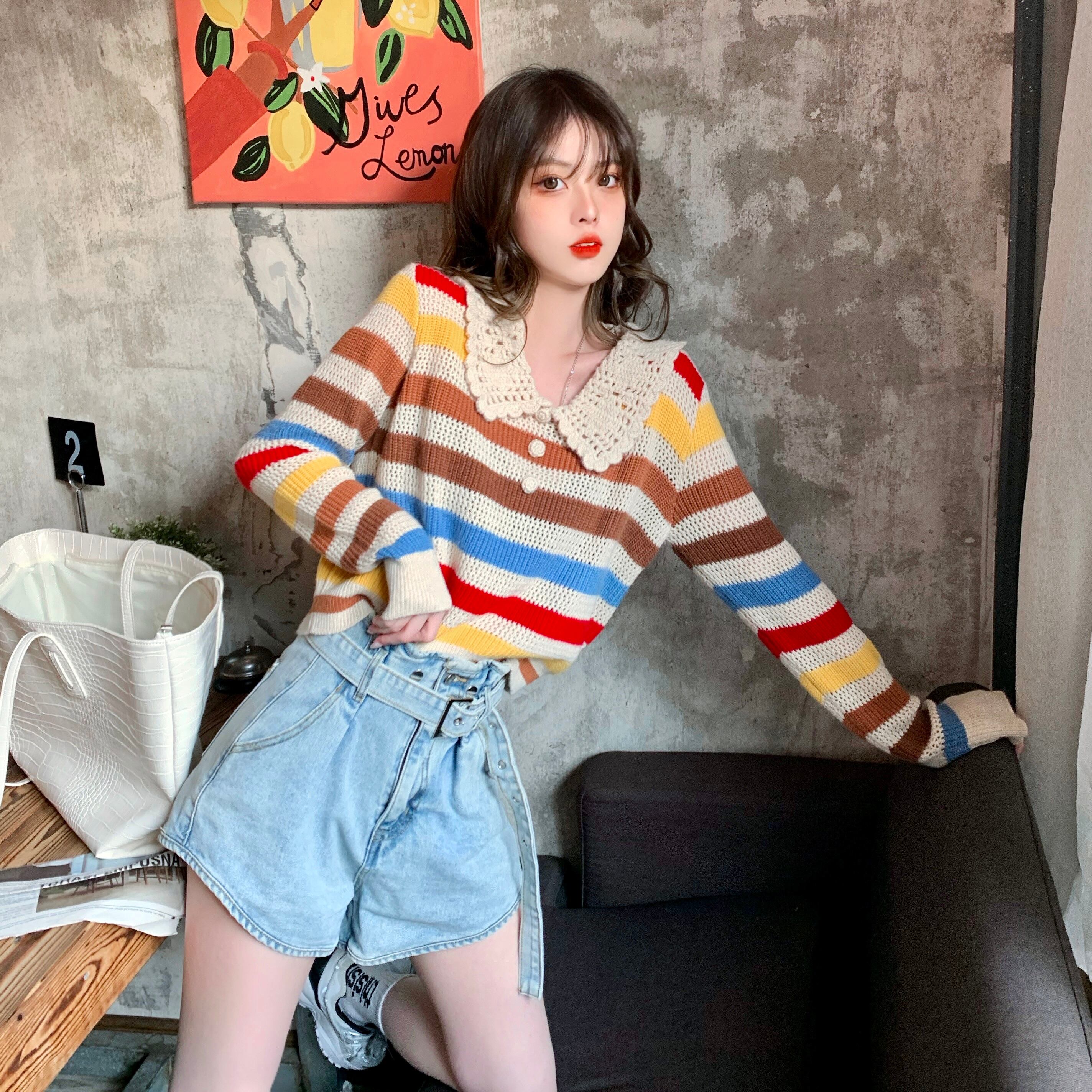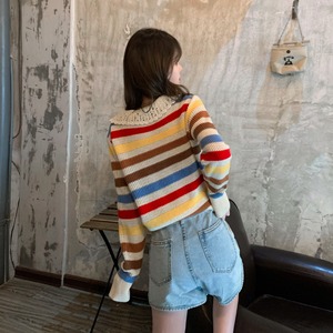 【韓国通販 dgo】rainbow stripe cropped tops(A0411)