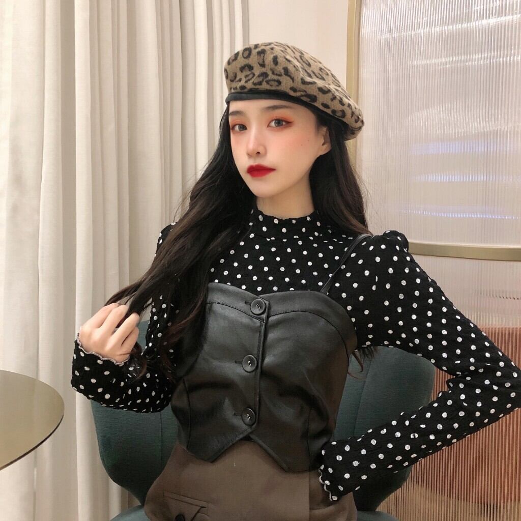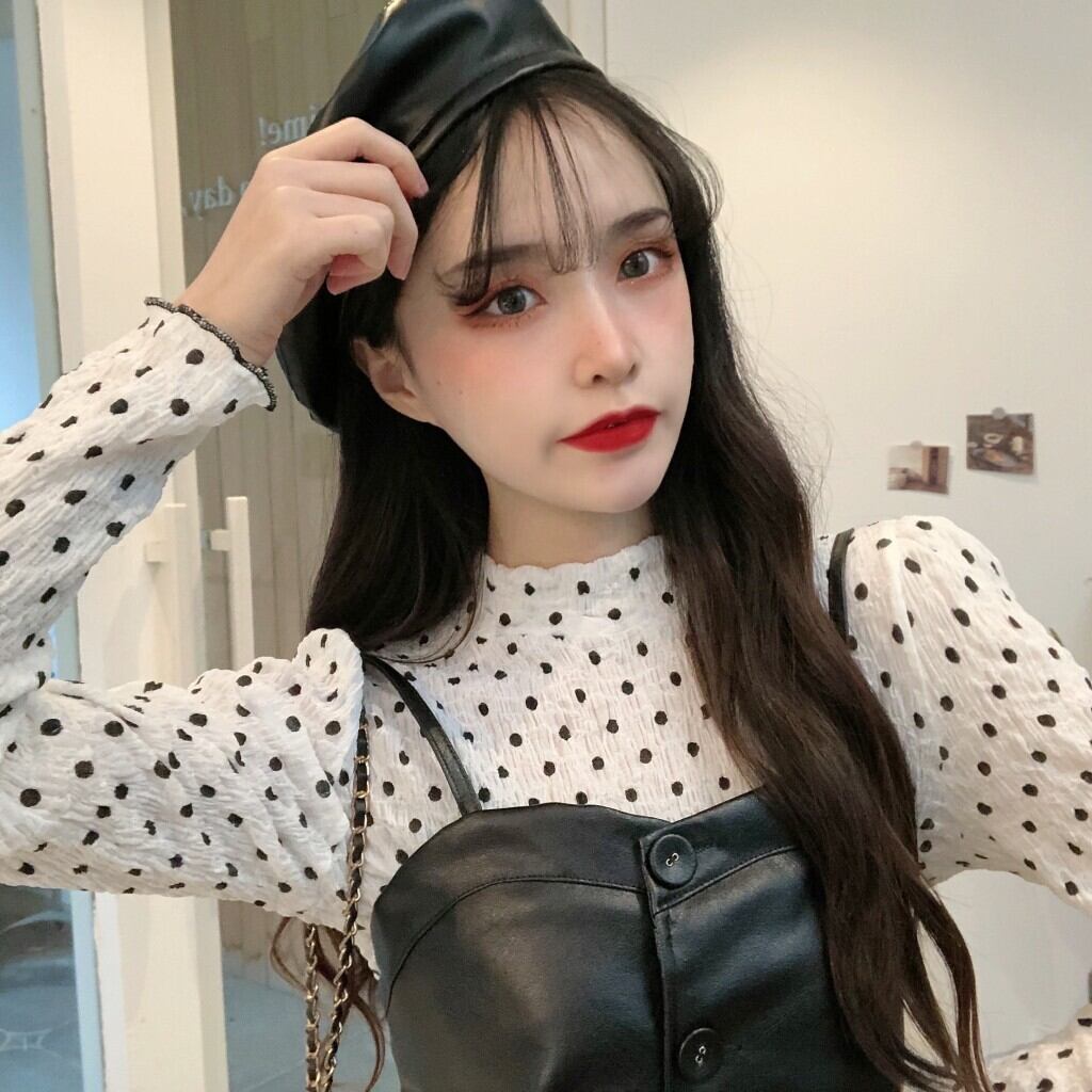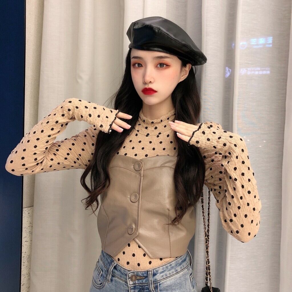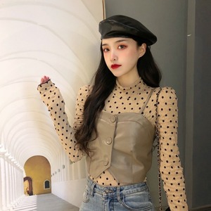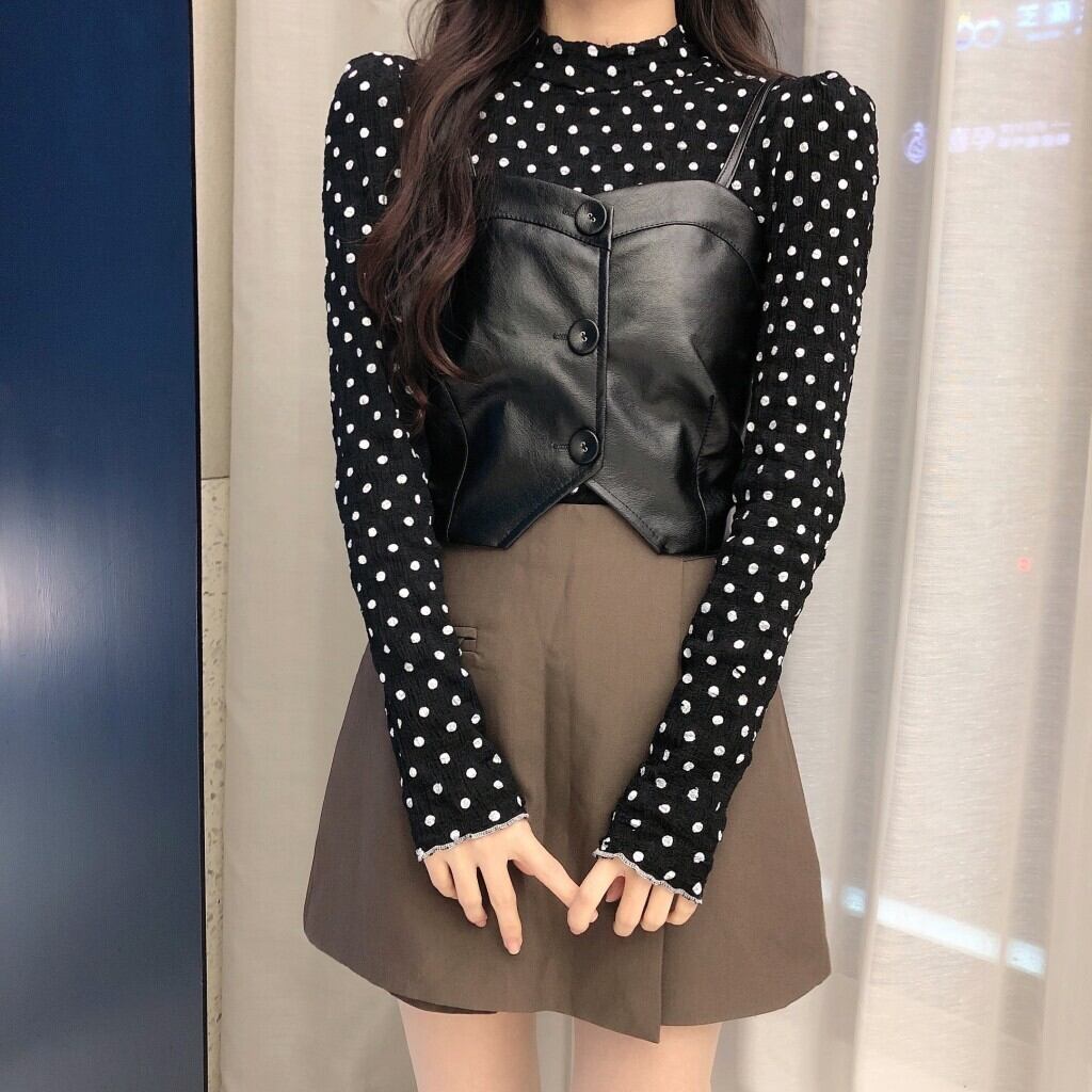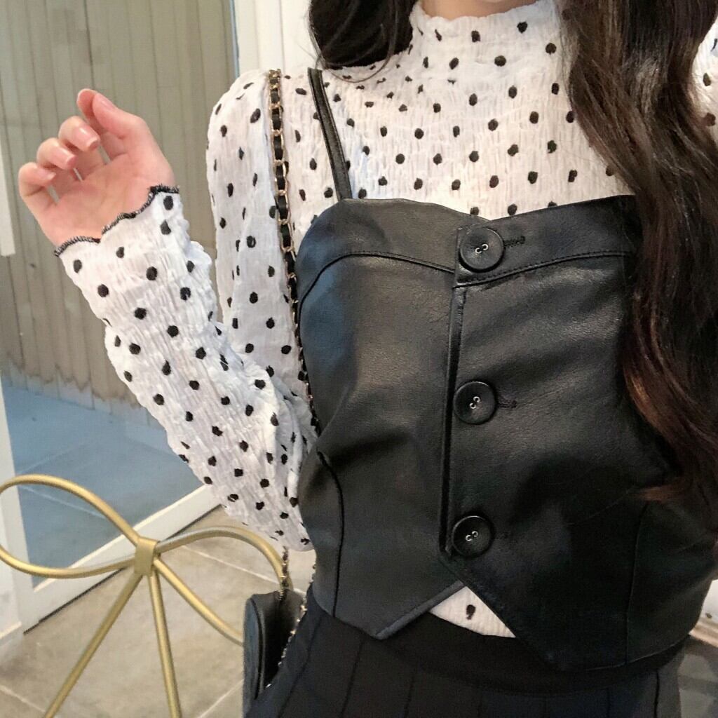 【韓国通販 dgo】polka dots tops + leather camisole two-piece(A0410)