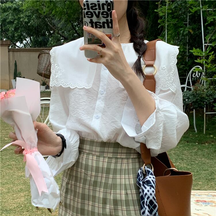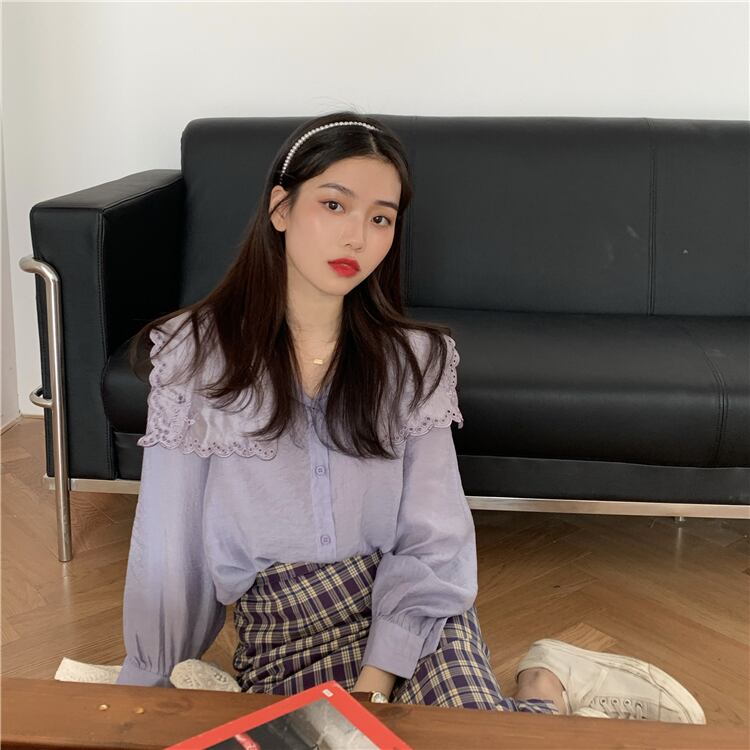 【韓国通販 dgo】doll neck long sleeve shirt 2colors(A0393)