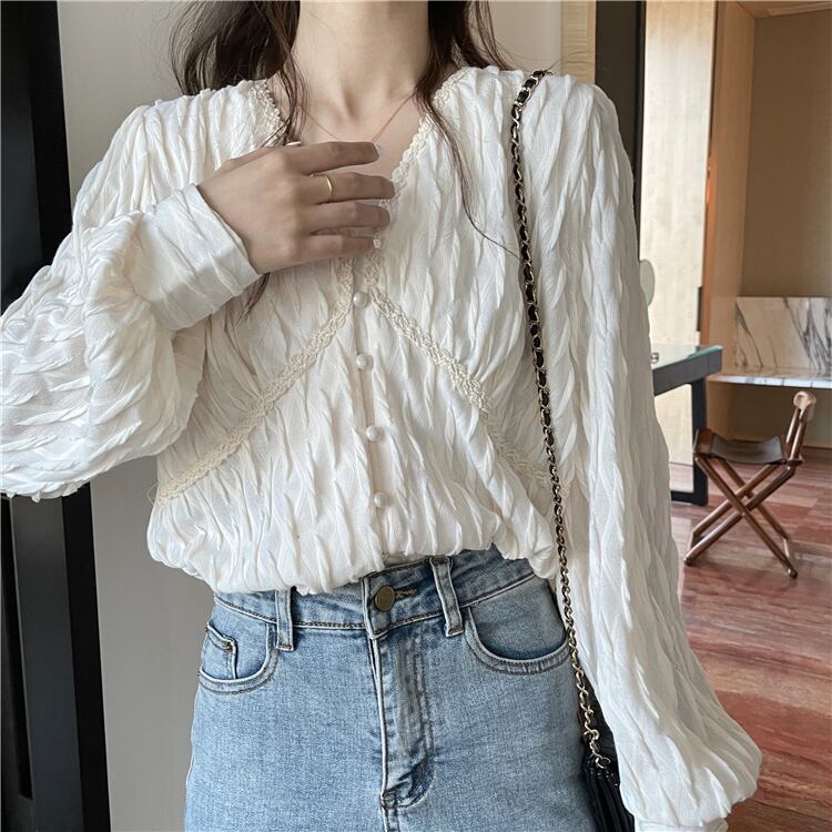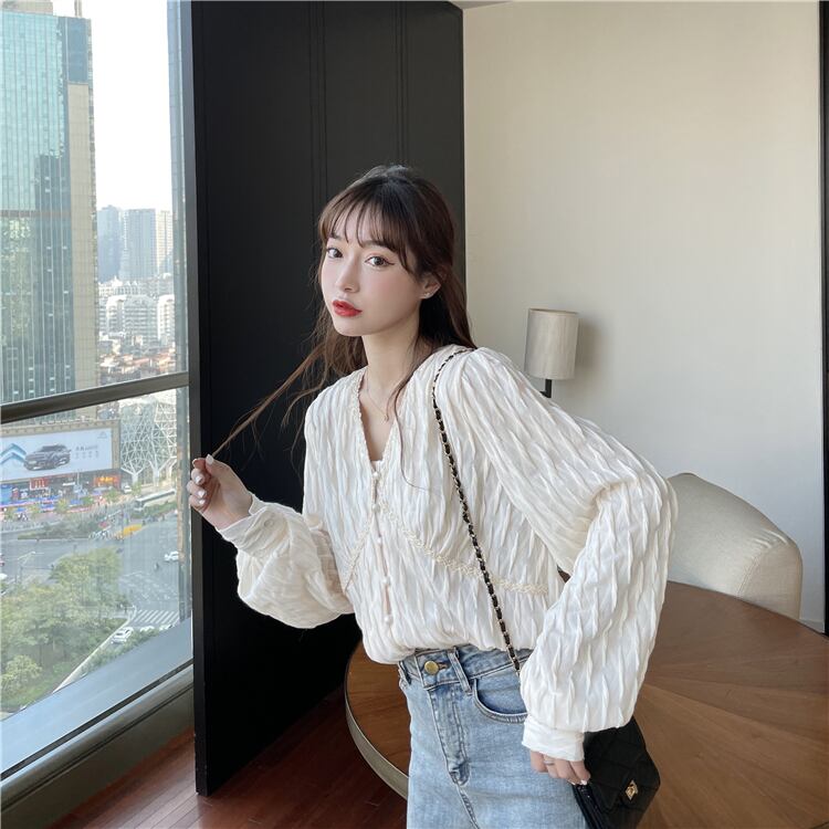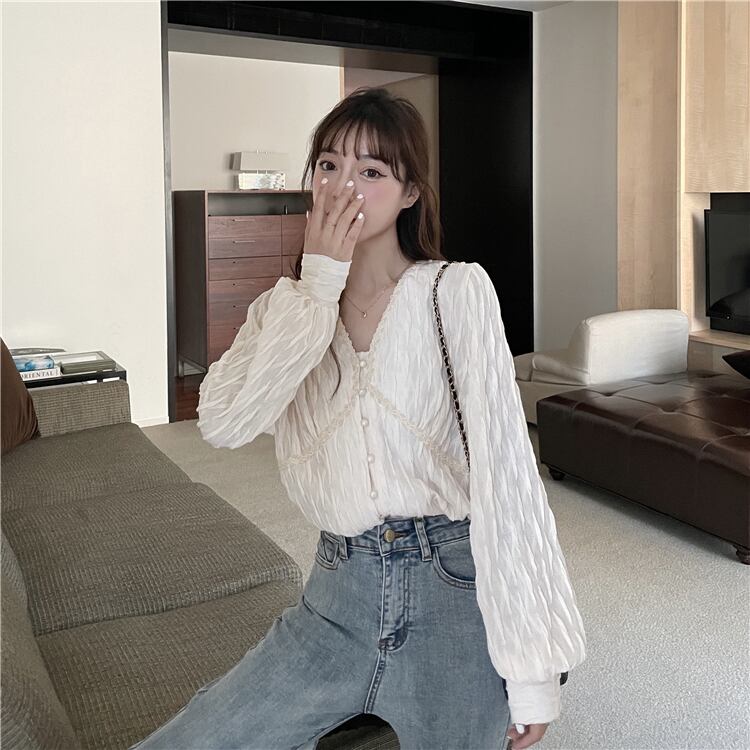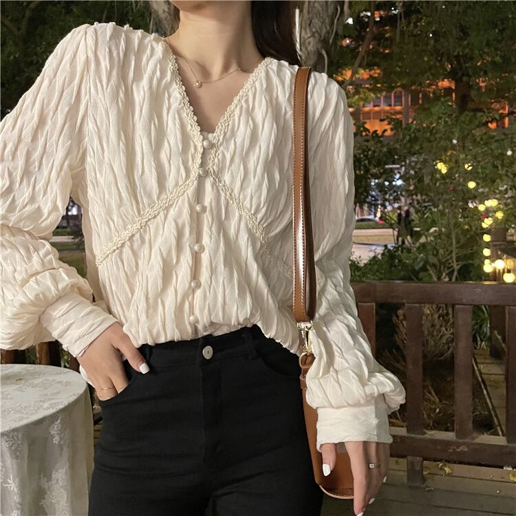 【韓国通販 dgo】puff sleeve v-neck chiffon blouse(A0368)