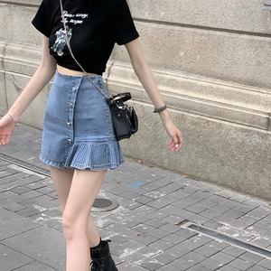 【韓国通販 dgo】high-waist pleated short denim skirt(A0354)