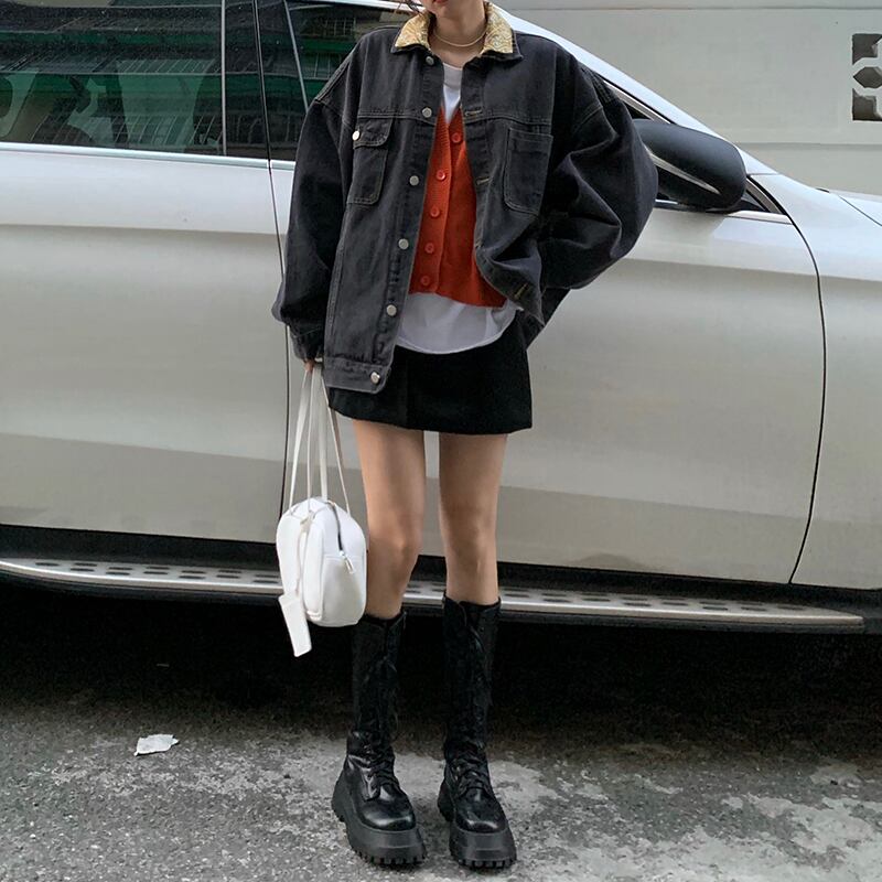 【韓国通販 dgo】double collar denim jacket(A0353)