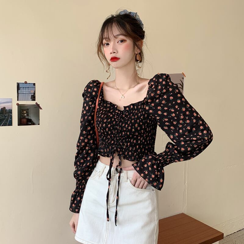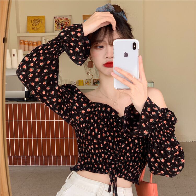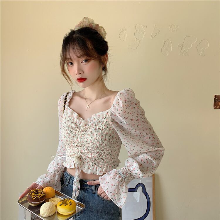 【韓国通販 dgo】flare sleeve floral chiffon tops 3colors(A0350)