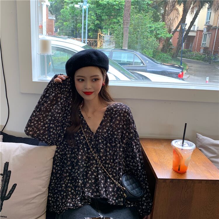 【韓国通販 dgo】v-neck puff sleeve shirt 2colors(A0311)