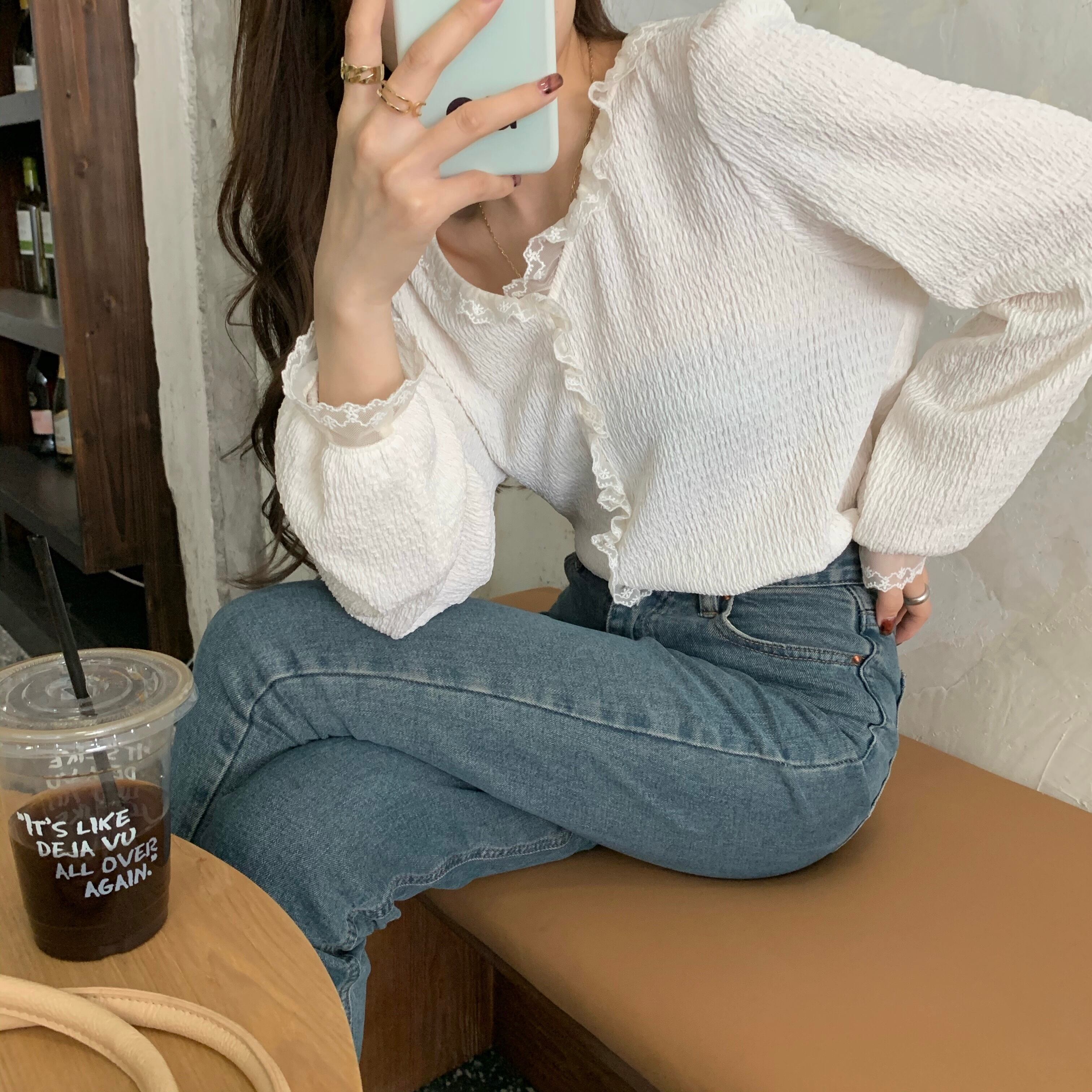【韓国通販 dgo】v-neck long sleeve lace shirt(A0308)センス溢れるファッションitem