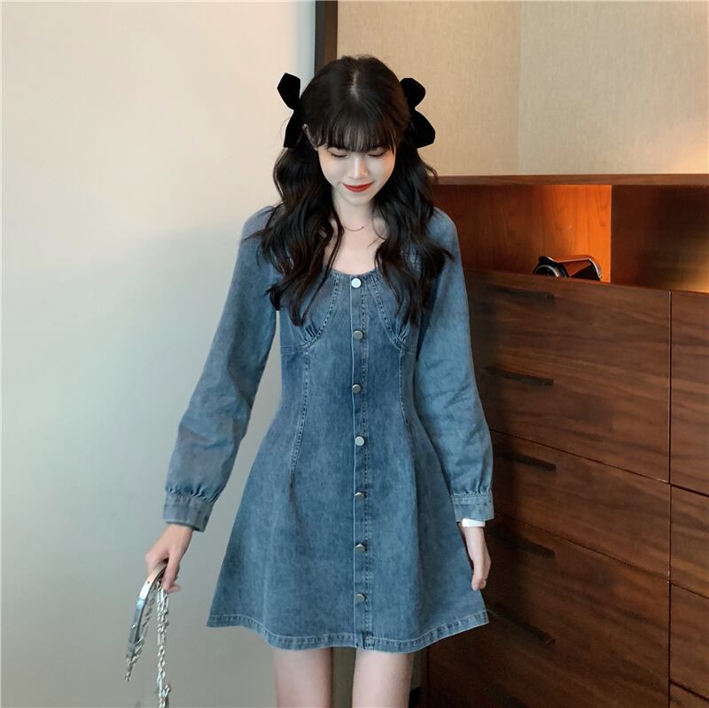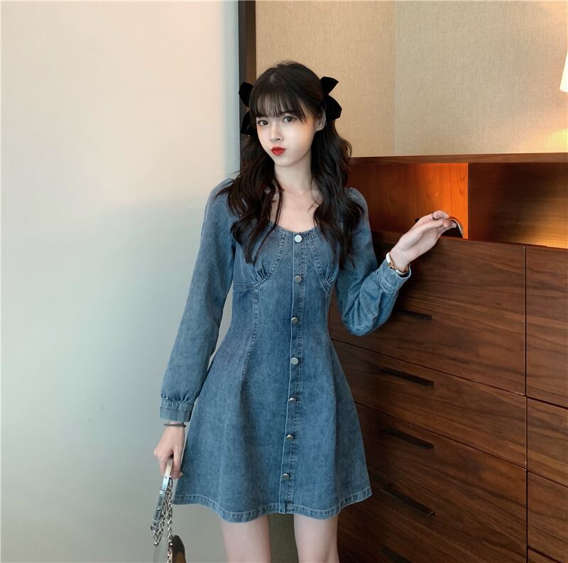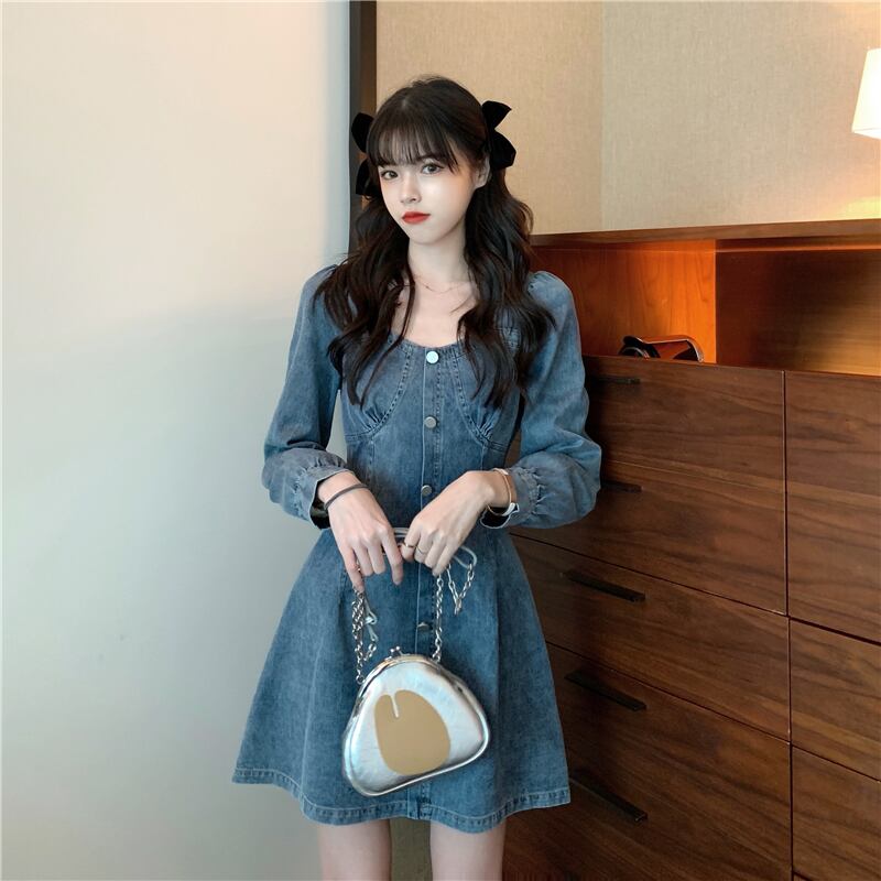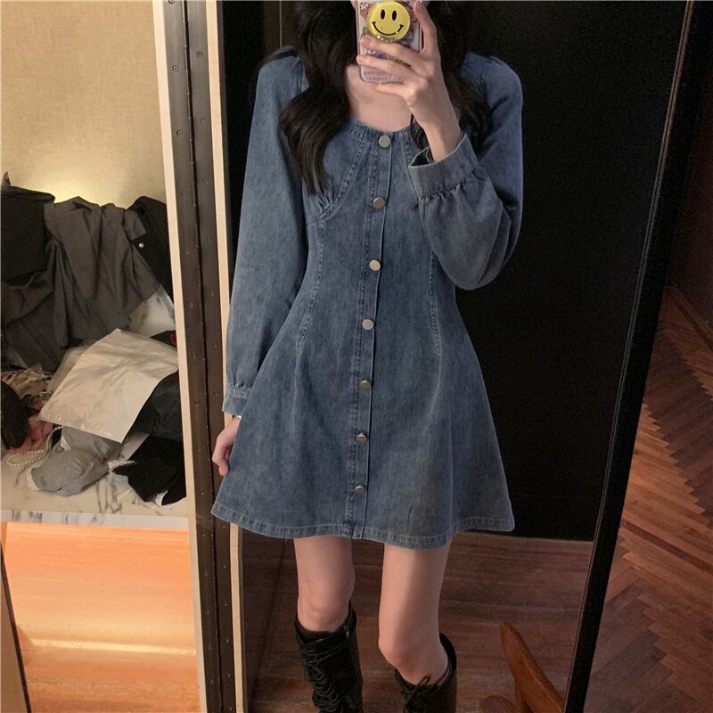 【韓国通販 dgo】retro high-waist small denim dress(A0299)