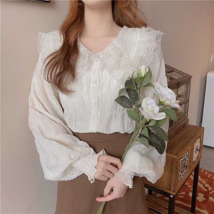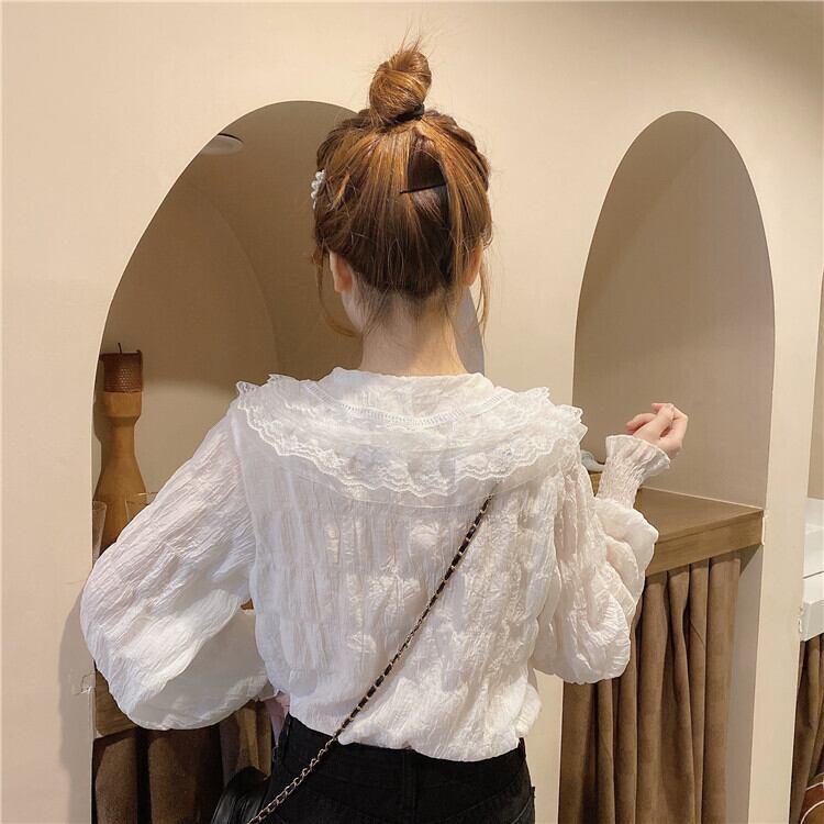 【韓国通販 dgo】retro puff sleeve big collar shirt 2colors(A0298)
