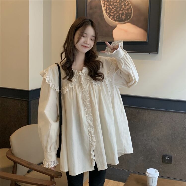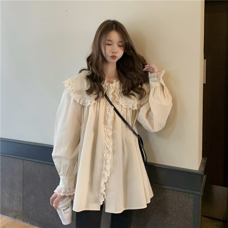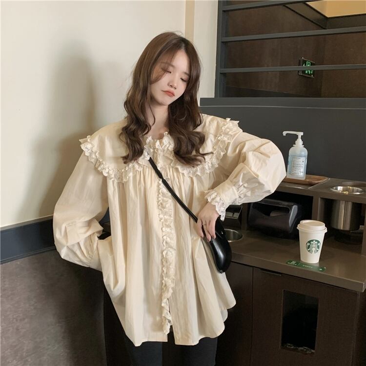 【韓国通販 dgo】retro big collar frill shirt ivory color(A0297)