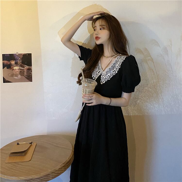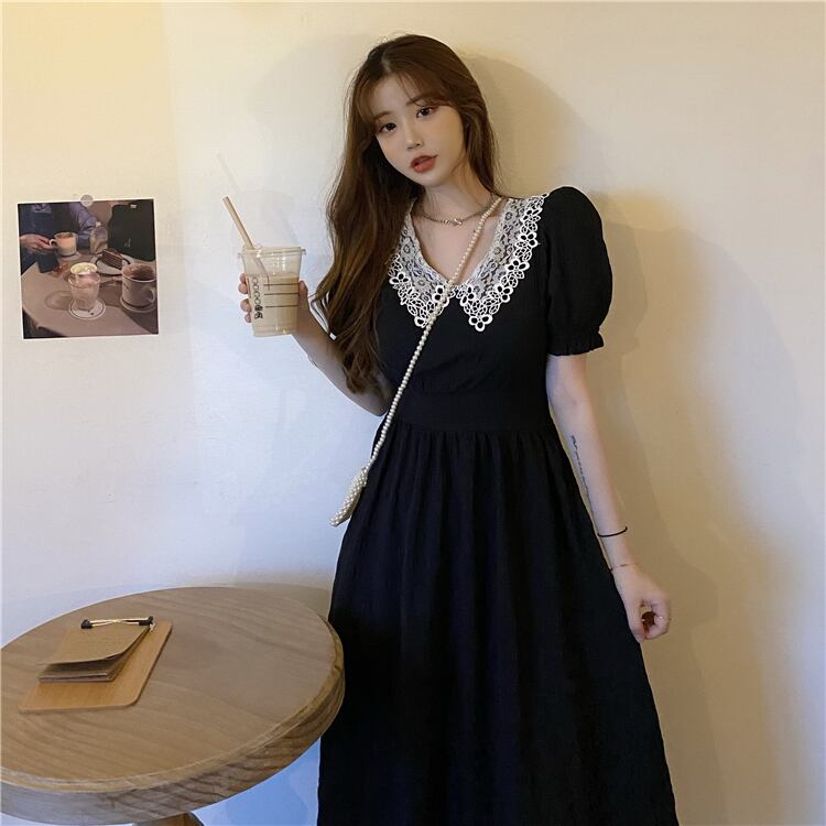 【韓国通販 dgo】retro puff sleeve black dress(A0289)