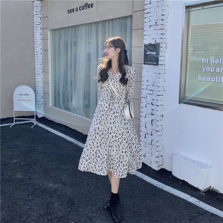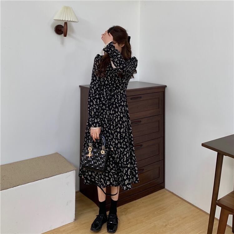【韓国通販 dgo】middle-length high-waist floral dress(A0288)