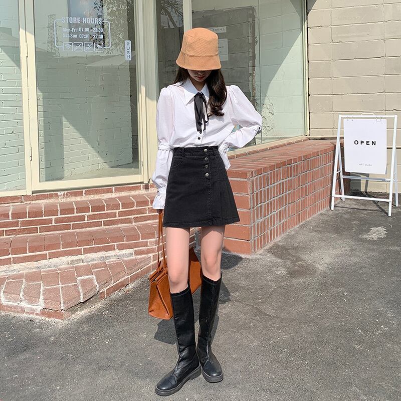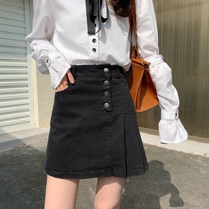 【韓国通販 dgo】pleated denim short skirt 2colors(A0287)
