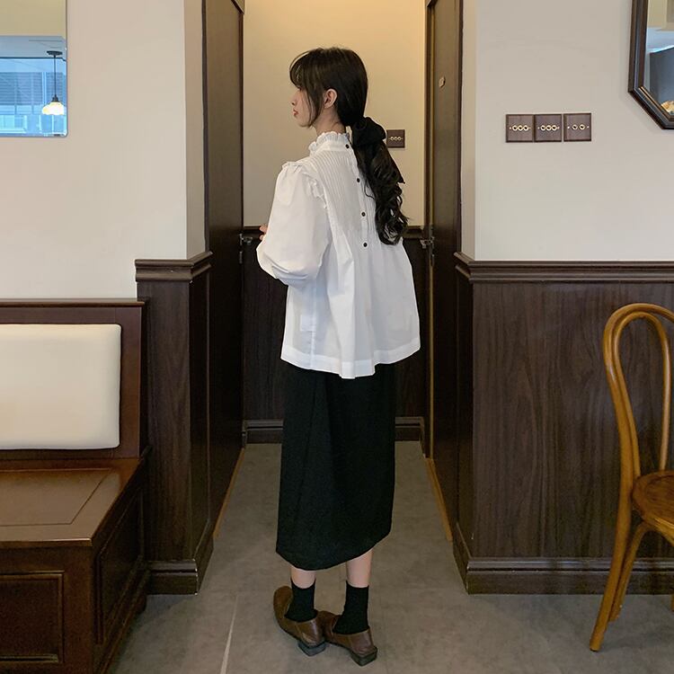 【韓国通販 dgo】retro half high neck pleated shirt(A0278)