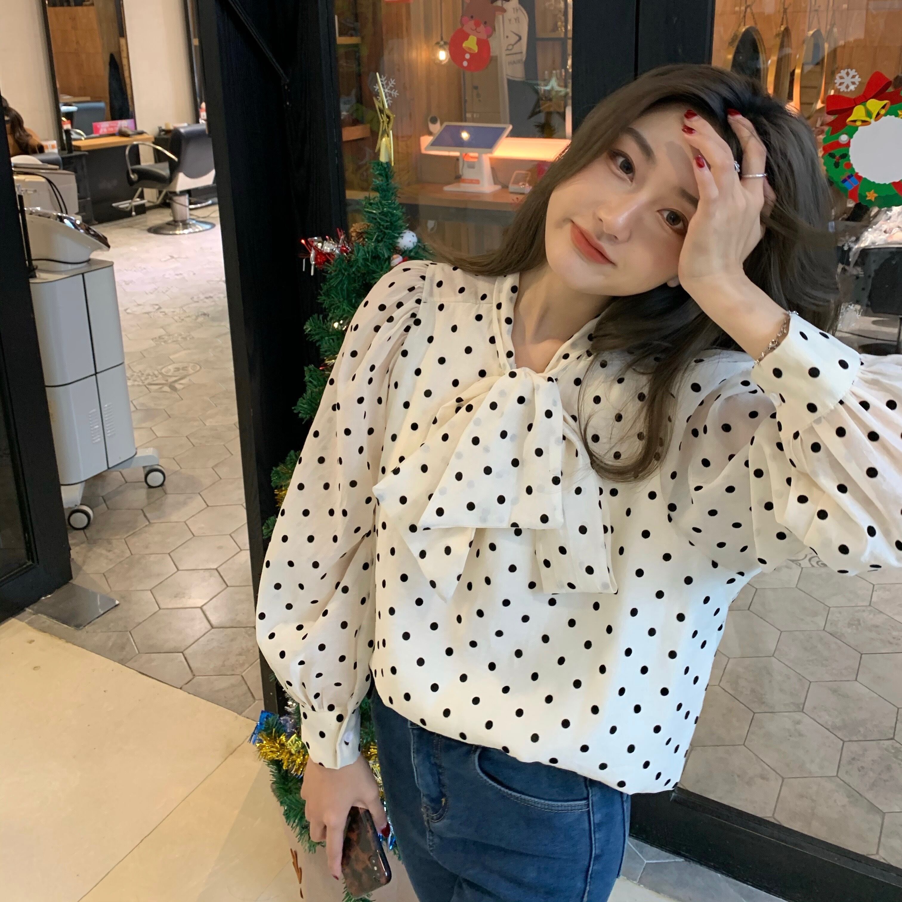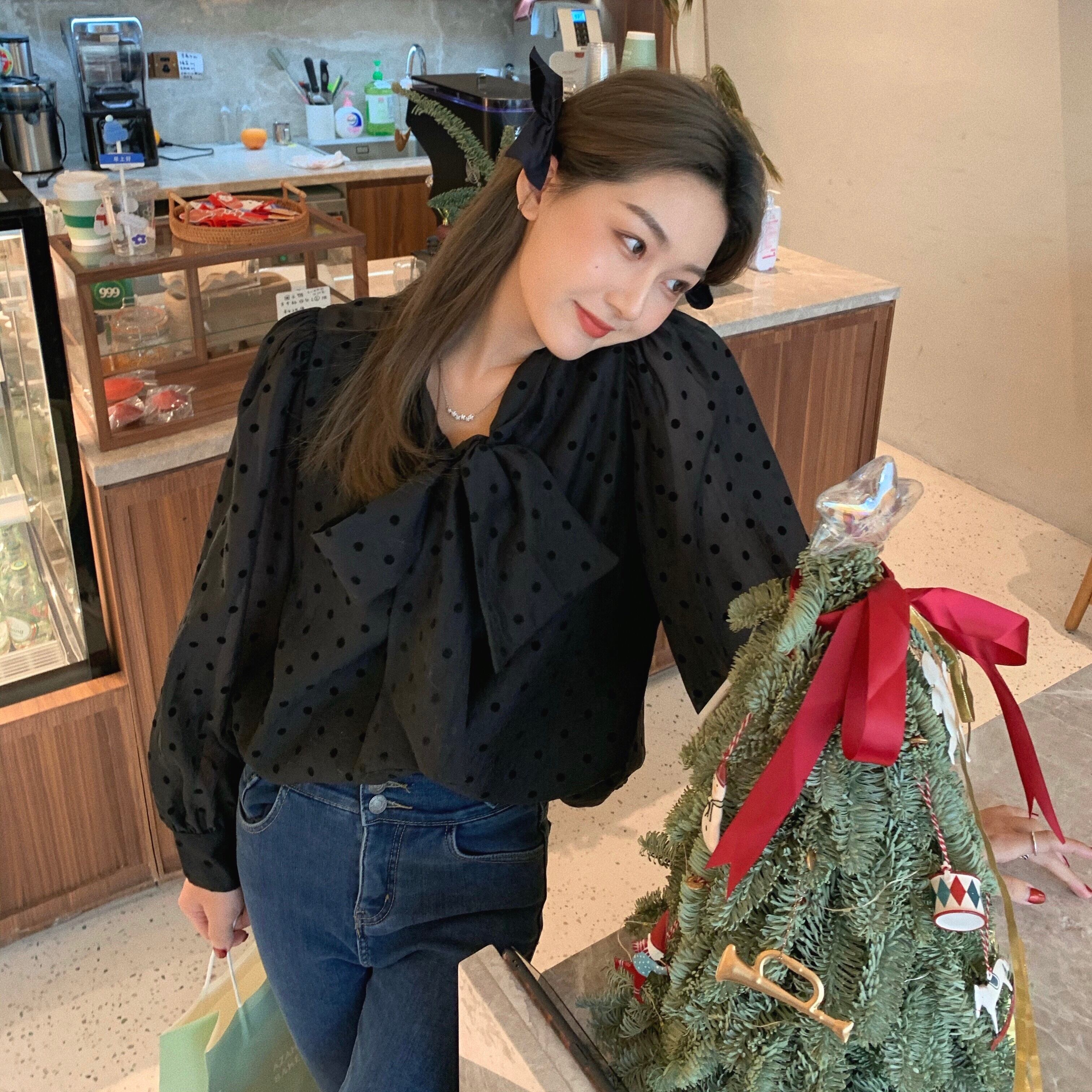 【韓国通販 dgo】polka‐dot pattern bowknot tops 2colors(A0272)