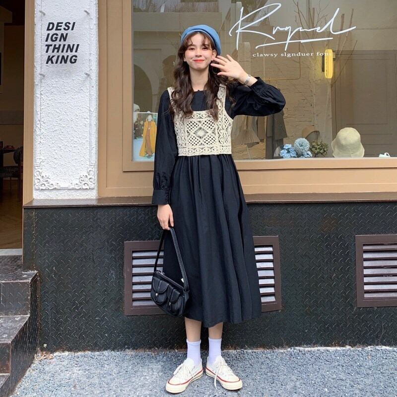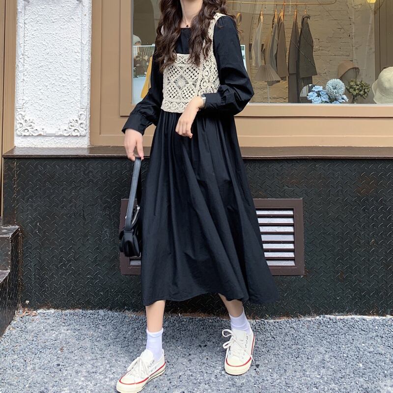 【韓国通販 dgo】middle-length crew neck dress + bustier 2colors(A0268)