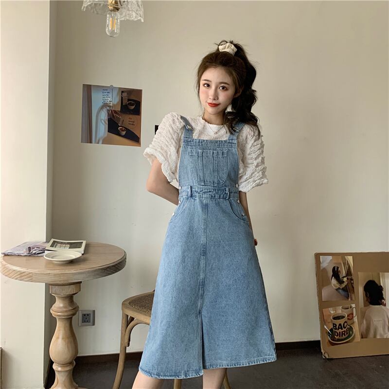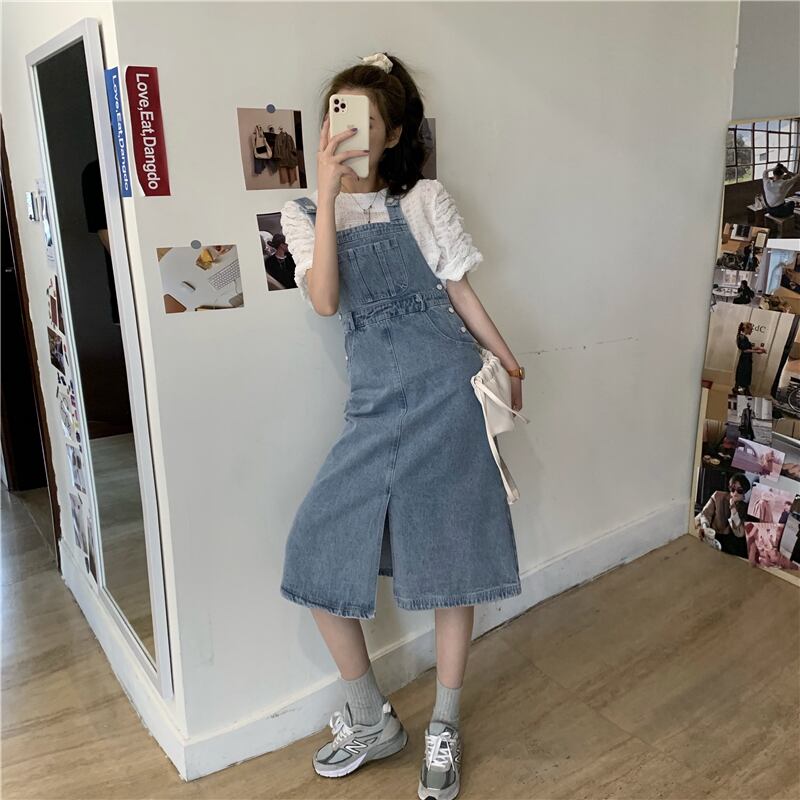 【韓国通販 dgo】high-waist middle-length salopette skirt(A0185)