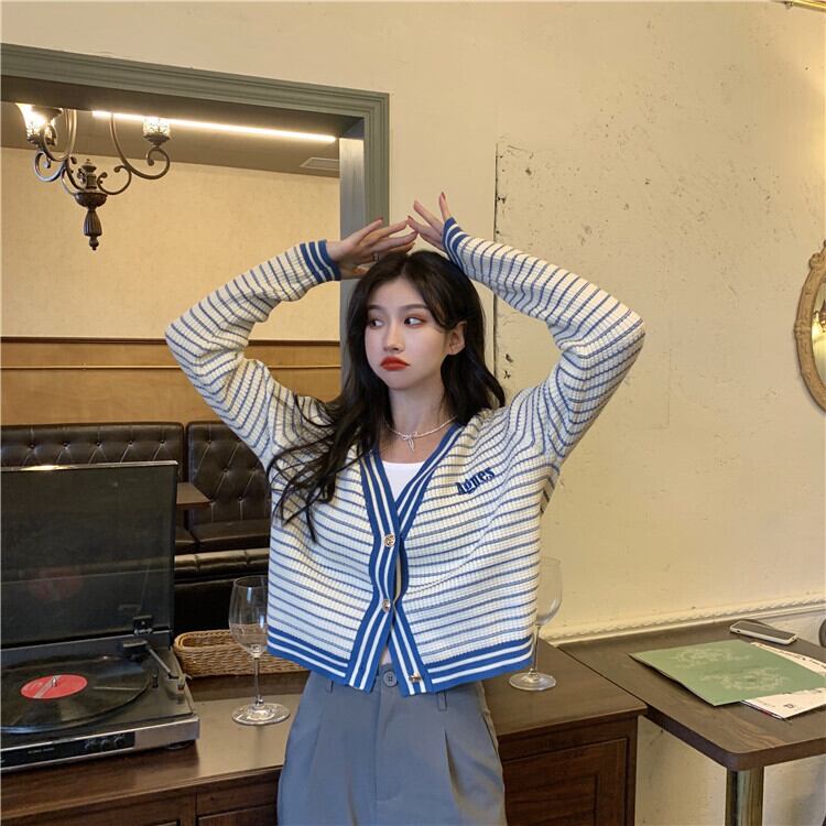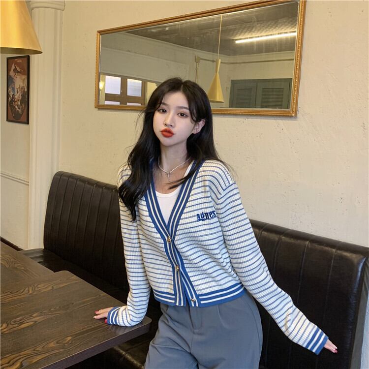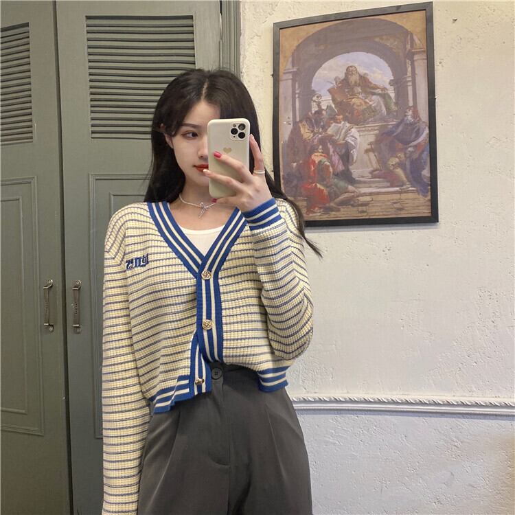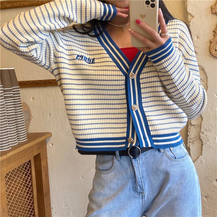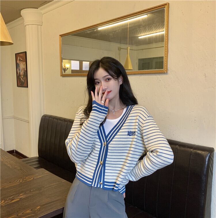 【韓国通販 dgo】v-neck stripe cardigan(A0178)