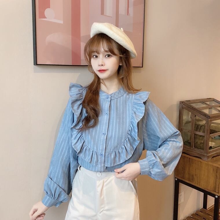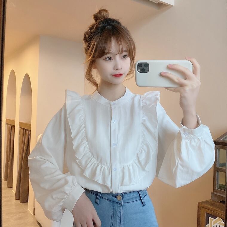 【韓国通販 dgo】french lantern sleeve shirt 2colors(A0163)