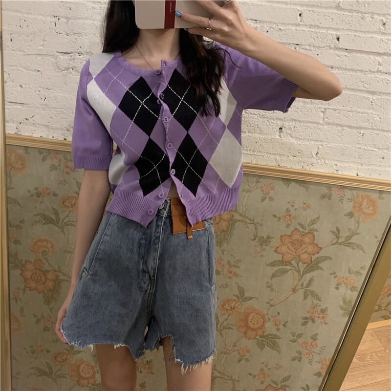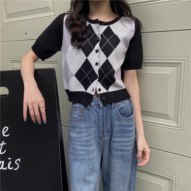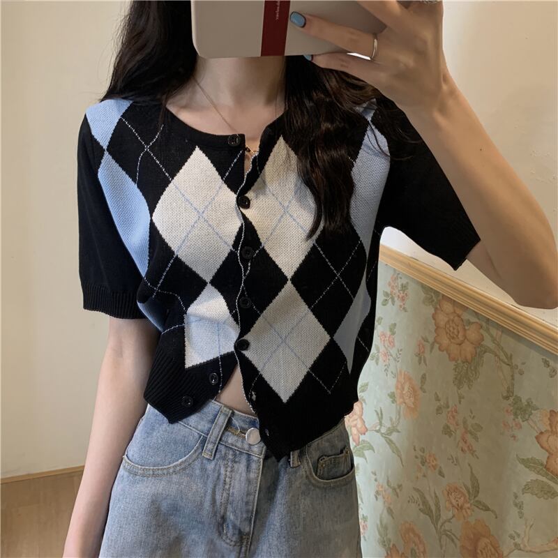 【韓国通販 dgo】retro checked short cardigan 4colors(A0142)