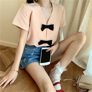【韓国通販 dgo】v-neck elegant short sleeve tops(A0107)
