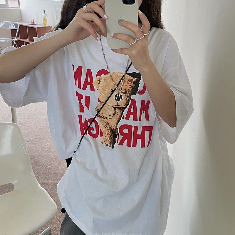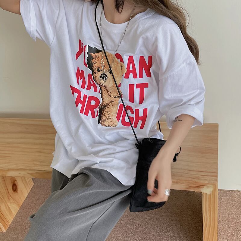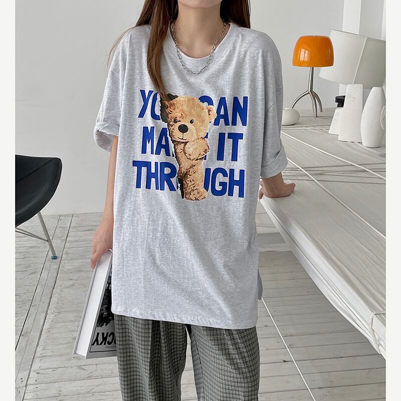 【韓国通販 dgo】middle-length round neck bear tops 2colors(A0099)
