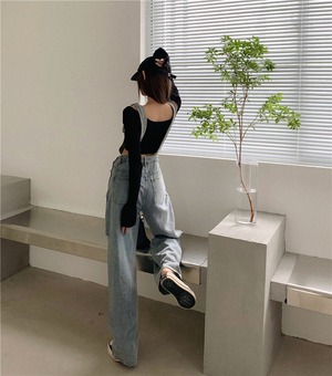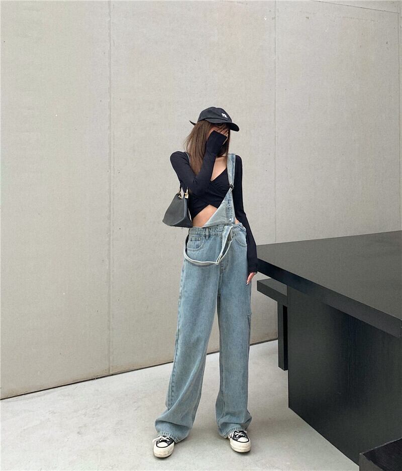 【韓国通販 dgo】high-waist wideleg denim overalls(A0093)