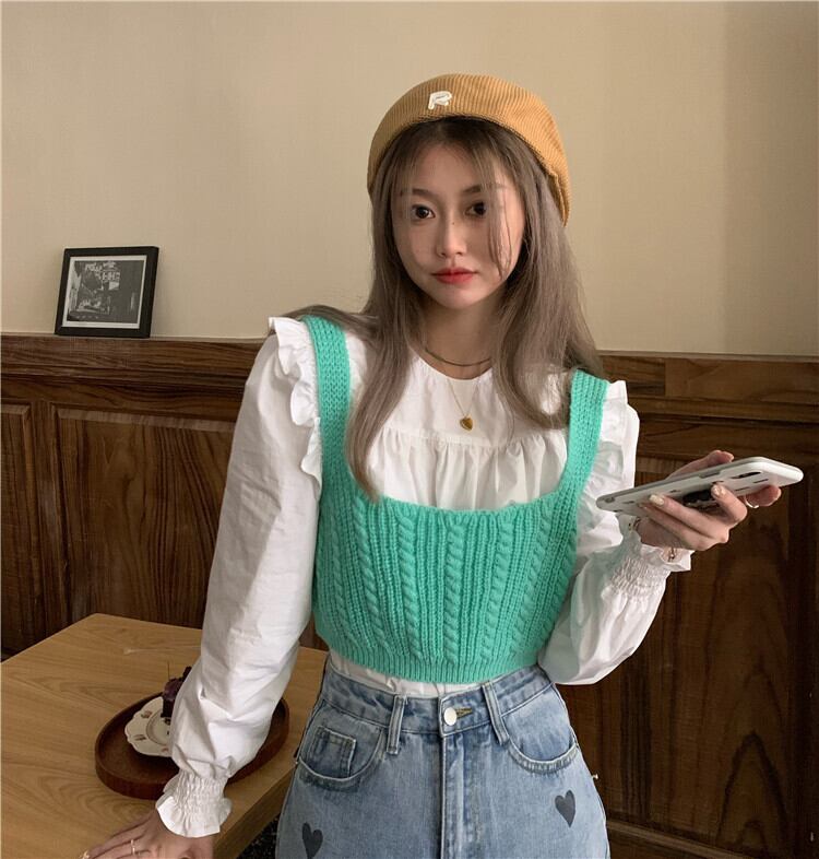 【韓国通販 dgo】round neck shirt + knit bustier 2colors(A0086)