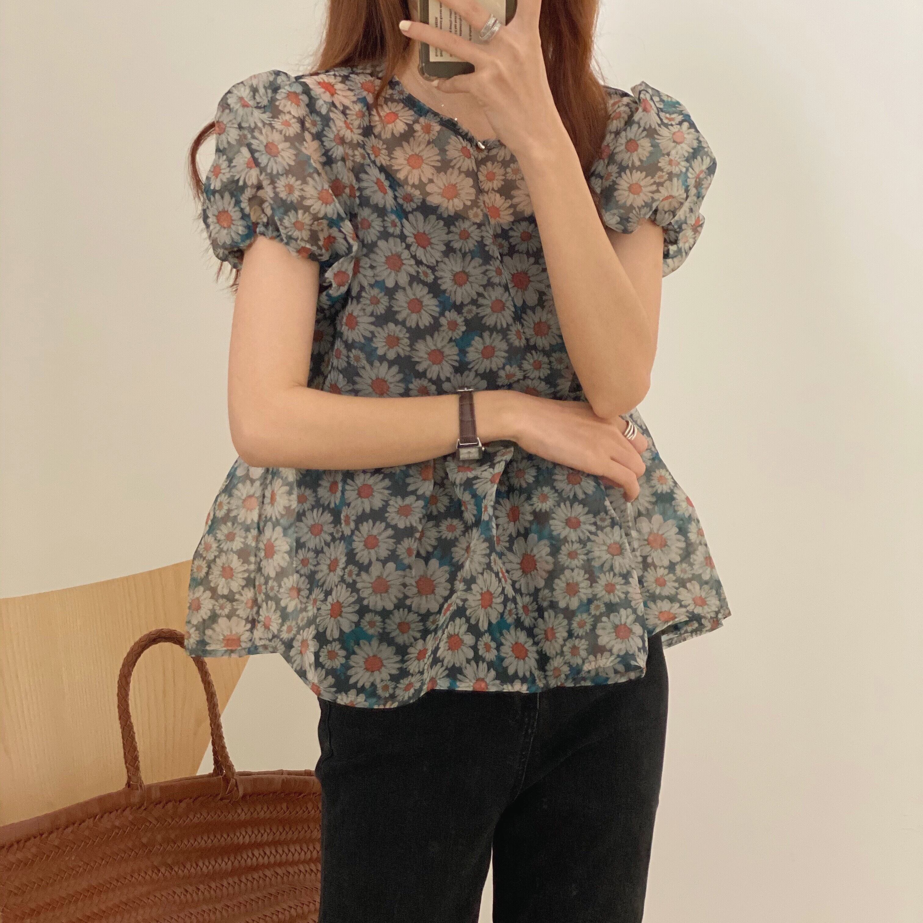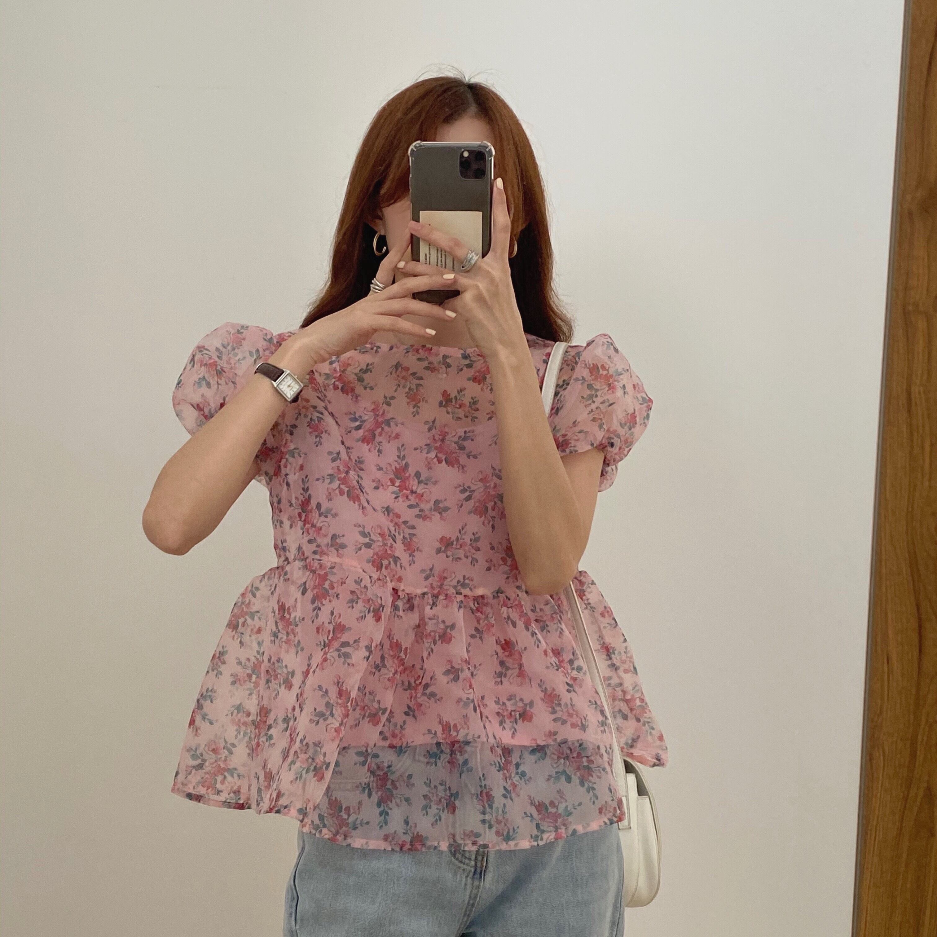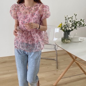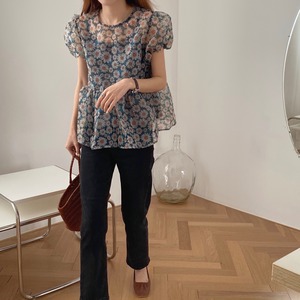 【韓国通販 dgo】round neck floral blouse + camisole two-piece 2colors(A0077)