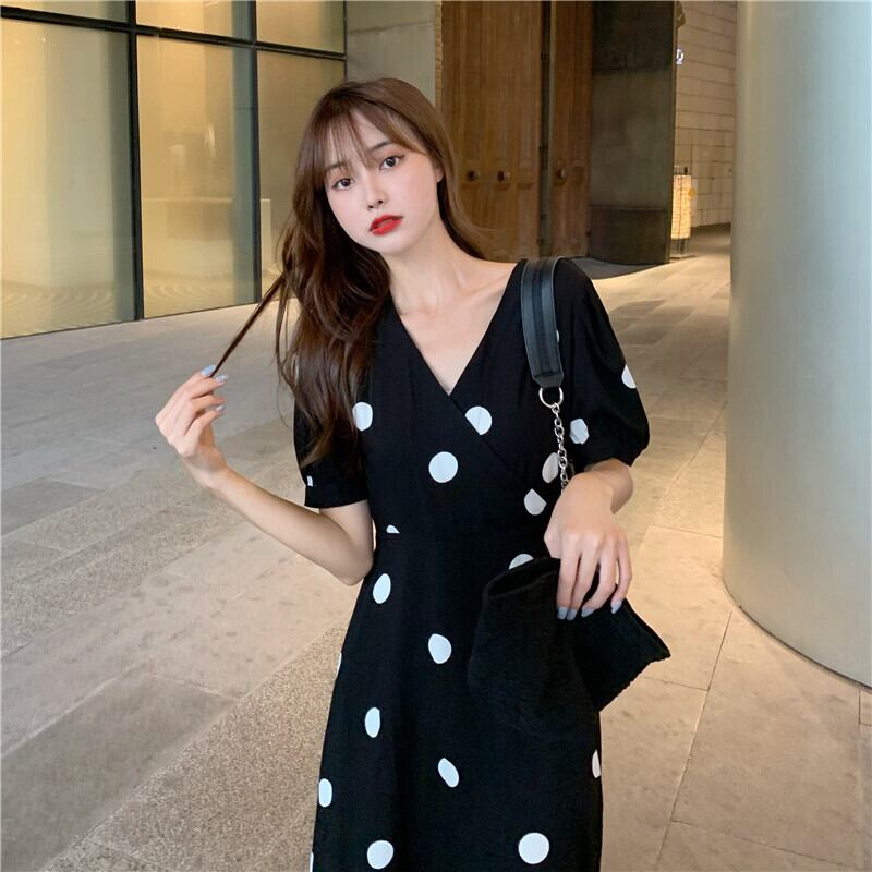 【韓国通販 dgo】french retro polka‐dot pattern v-neck dress(ドット柄Vネックワンピース)(A0059)
