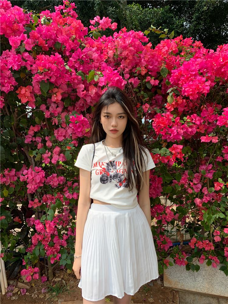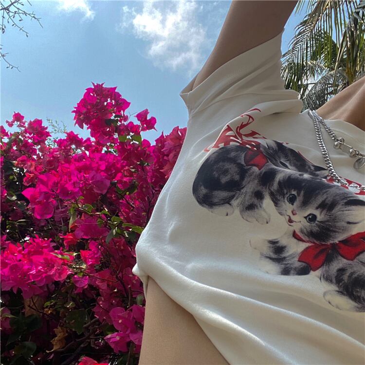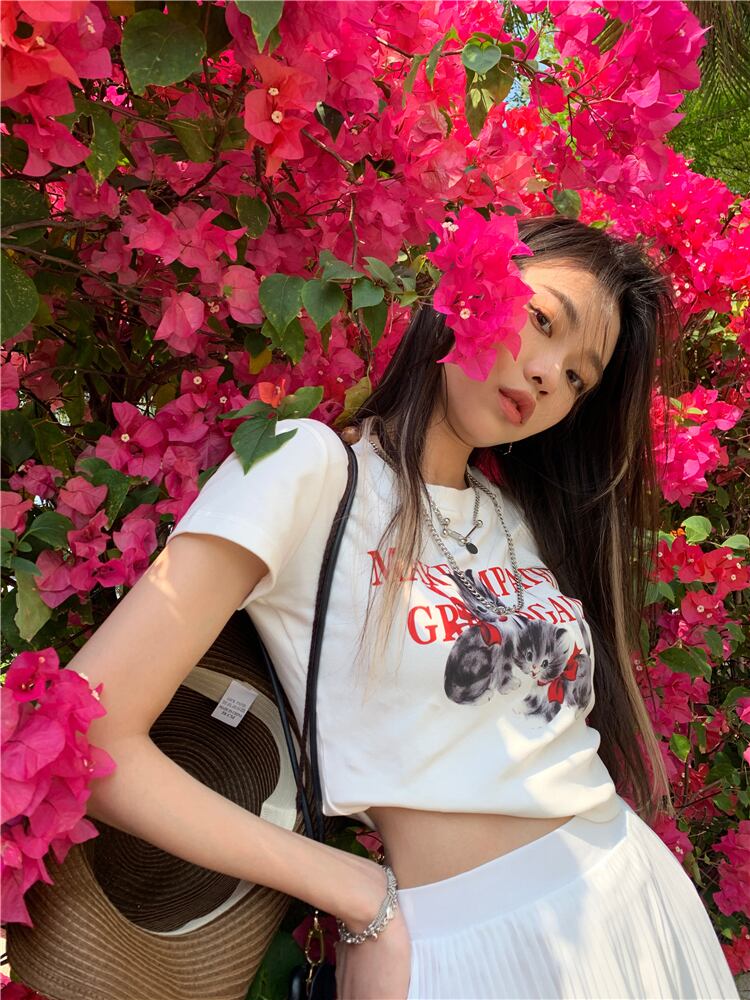 【韓国通販 dgo】round neck short sleeve cat tops(A0050)