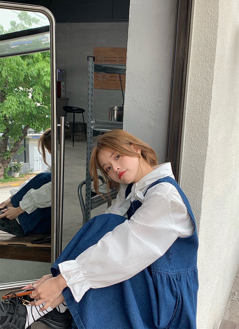 【韓国通販 dgo】denim vest dress + retro long sleeve shirt two-piece(A0040)