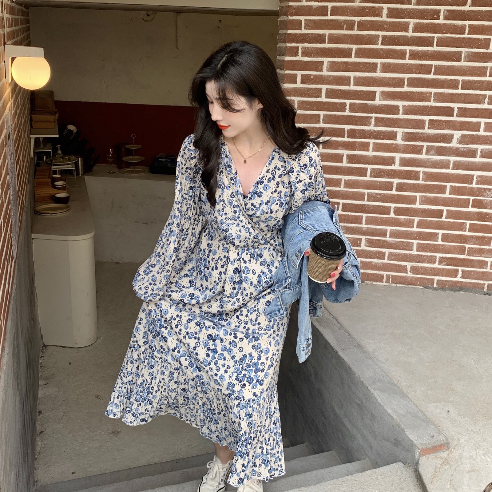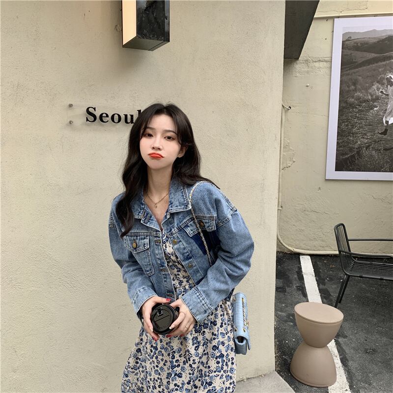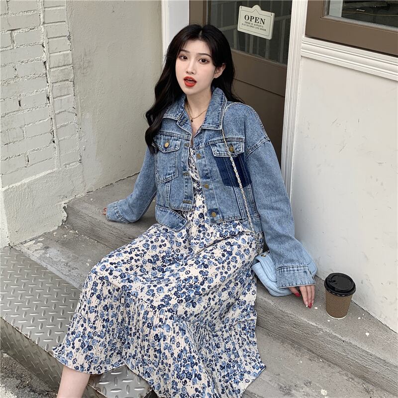 【韓国通販 dgo】denim jacket + french floral dress two-piece(A0035)