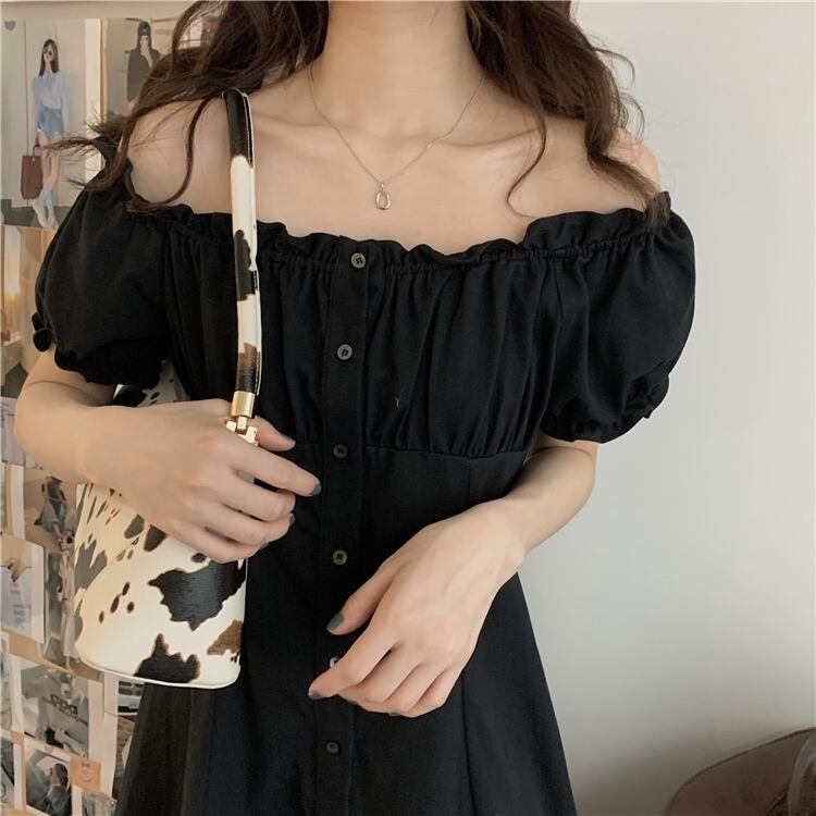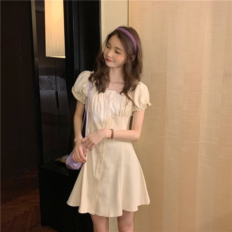 【韓国通販 dgo】french puff sleeve dress 2colors(A0022)