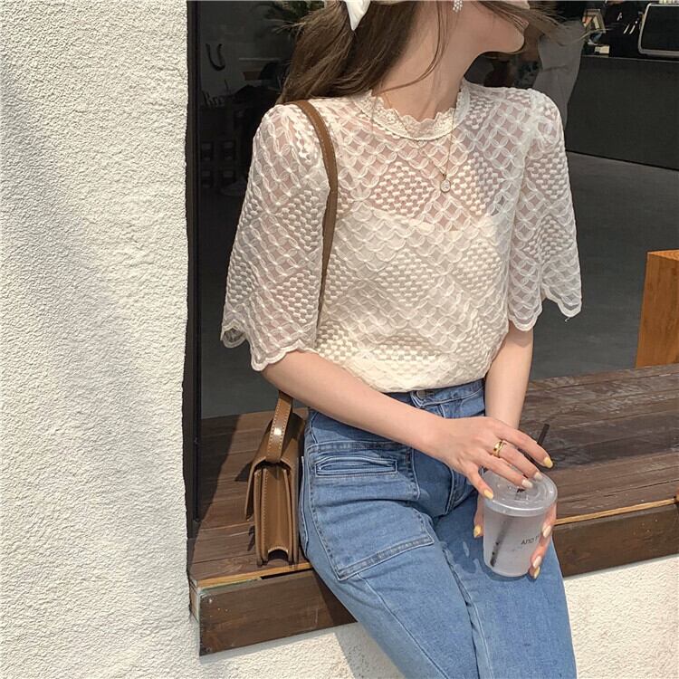 【韓国通販 dgo】stand collar lace tops(スタンドカラー レーストップス)(A0017)