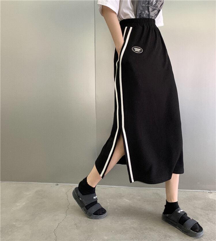 【韓国通販 dgo】high-waist casual slit black skirt(A0006)