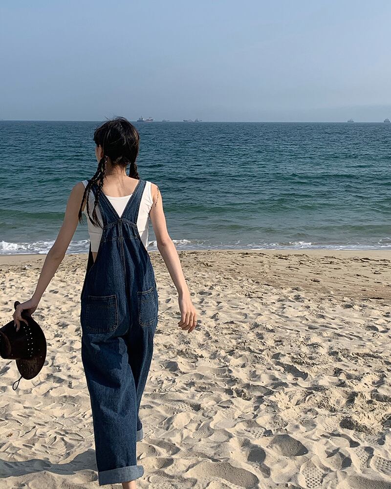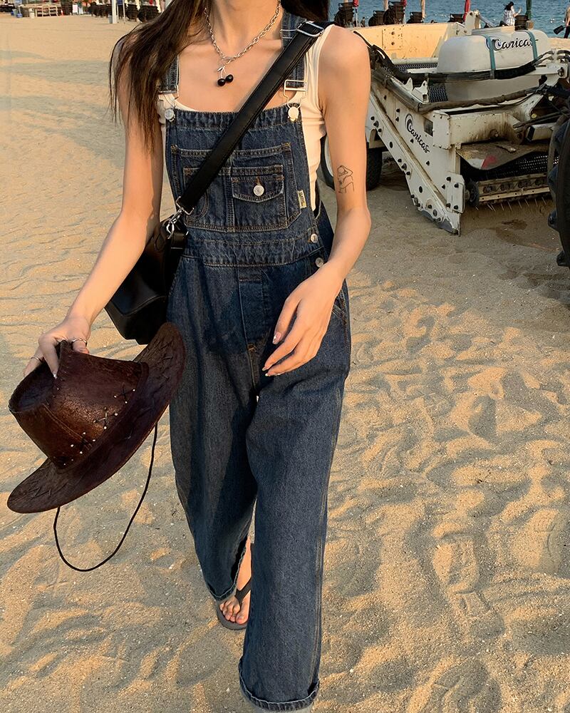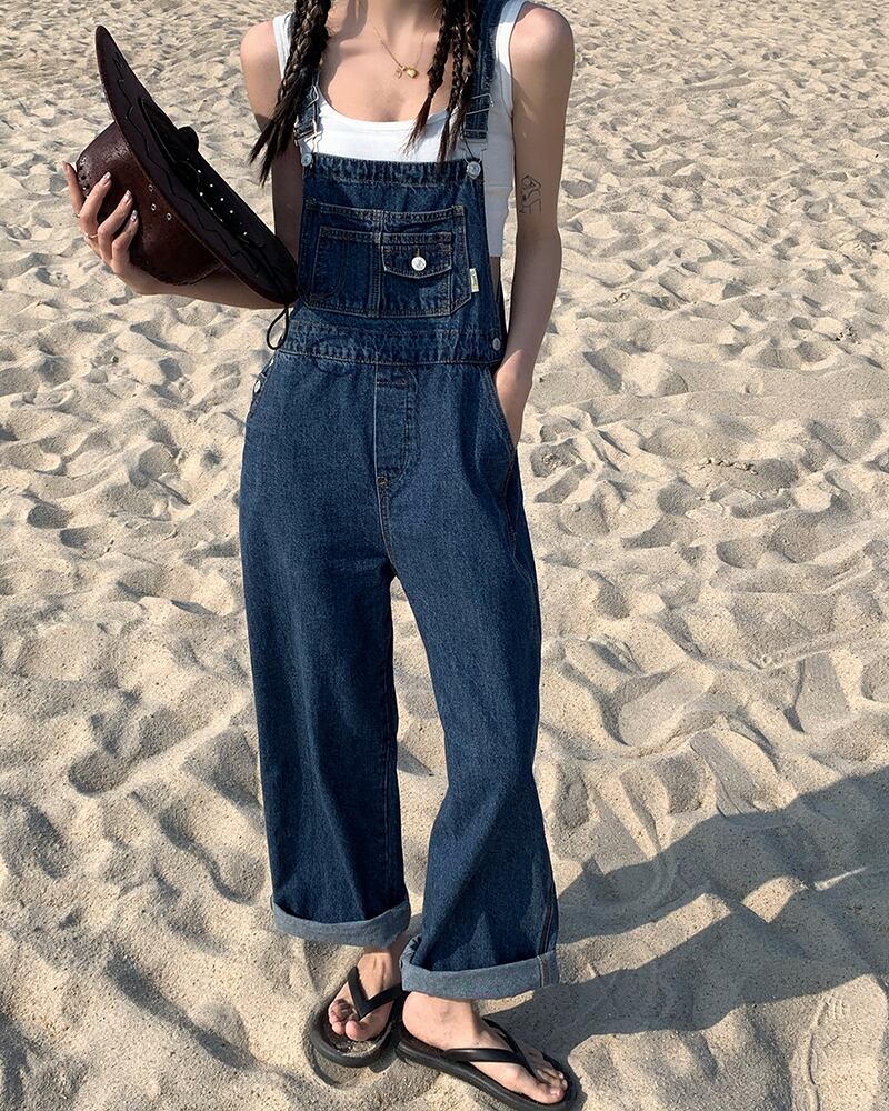 【韓国通販 dgo】high-waist denim wideleg overalls (B0005)