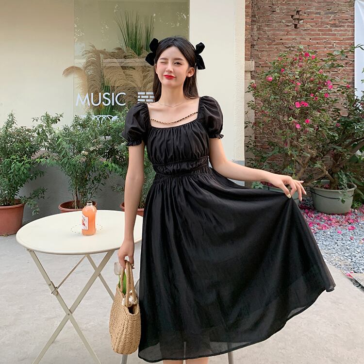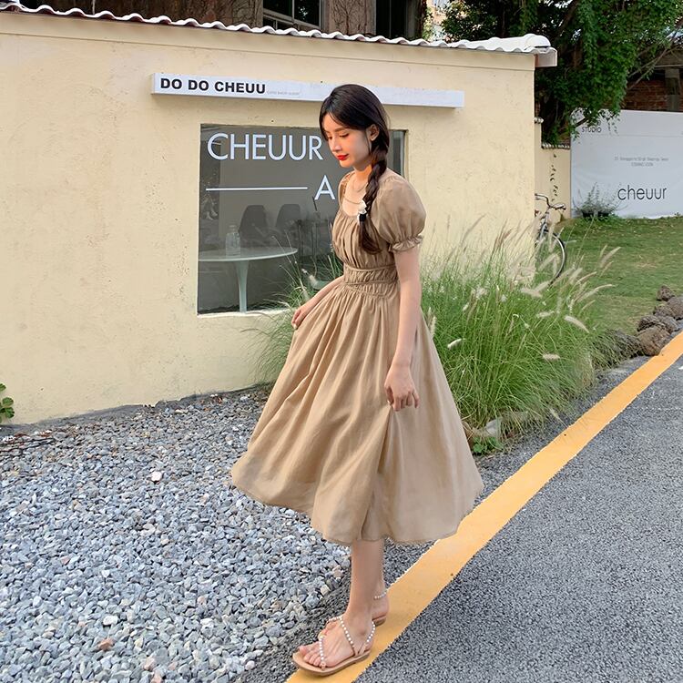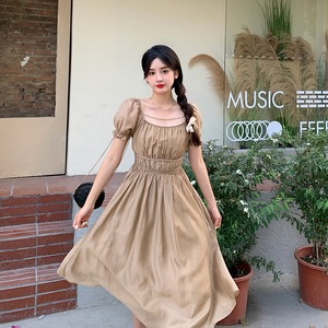 【韓国通販 dgo】retro square neck shirring dress 2colors(レトロ スクエアネック シャーリングワンピース)(B0596)