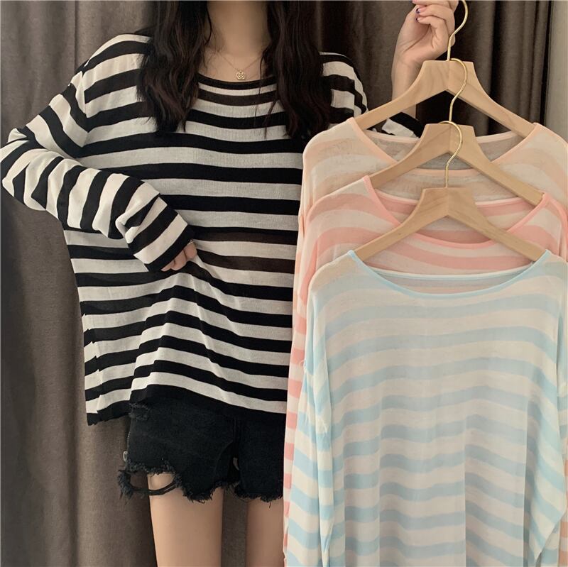【韓国通販 dgo】round neck stripe tops 4colors(B0613)